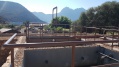 Les investissement ont fait l’objet d’un chantier complexe en raison de l’absence de desserte routière du village : transport par barge des engins de chantier sur site, création d’une unité de production de granulats avec curage du lit de la rivière pour fournir les agrégats, nécessité d’importants travaux complémentaires pour la bonne intégration de la STEP dans le site classé.