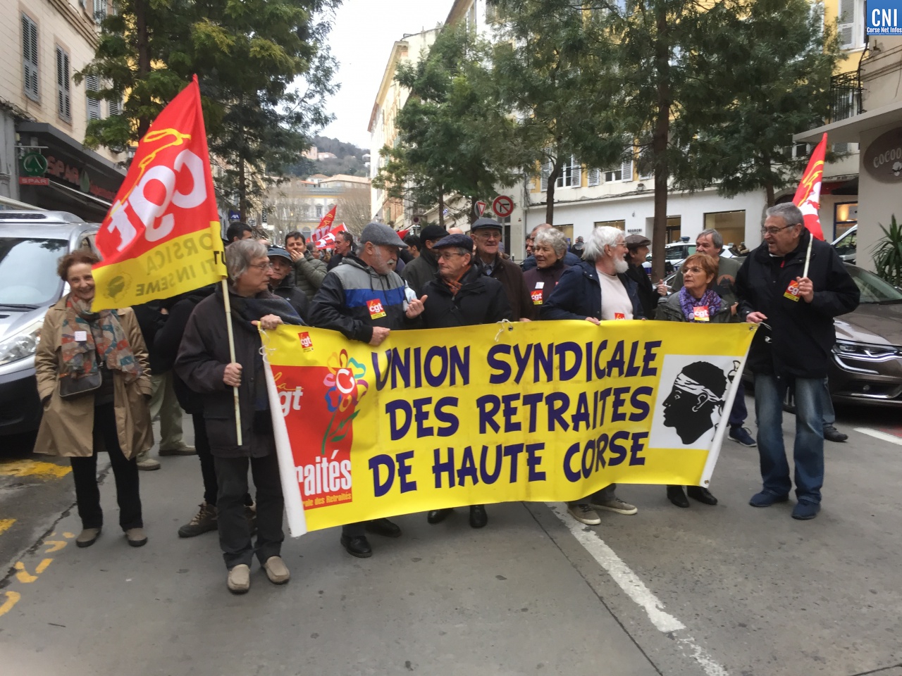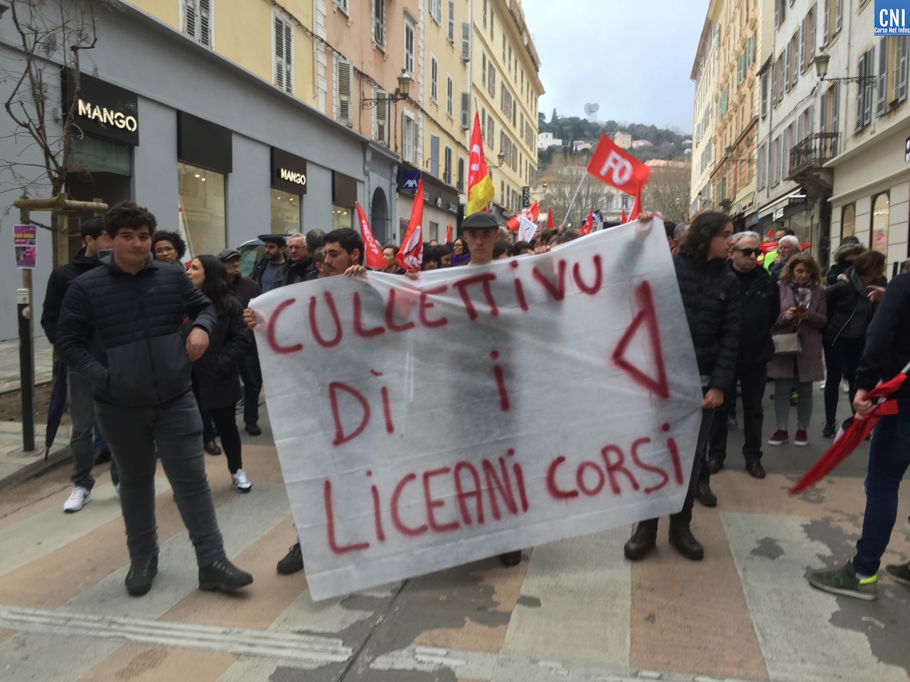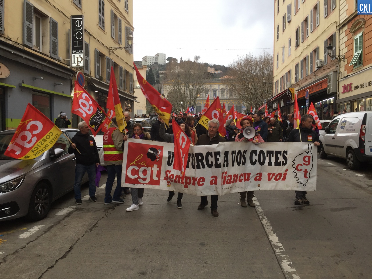 A l’intersyndicale CGT/FO/FSU/STC s’étaient joints aussi les avocats du barreau de Bastia, les douaniers garde-côtes, le syndicat « Solidaire » des finances, le Parti Communiste, des gilets jaunes, des lycéens.