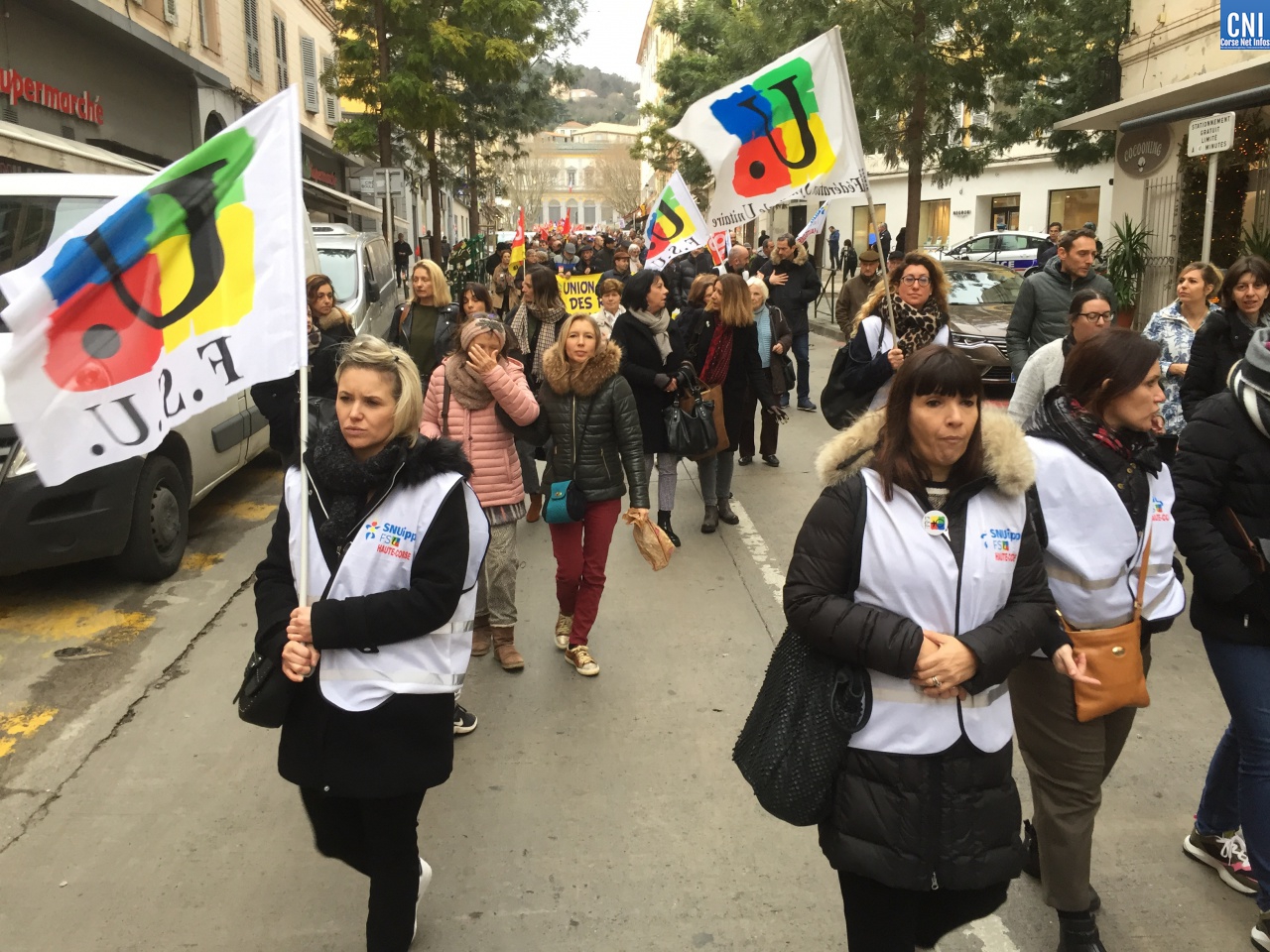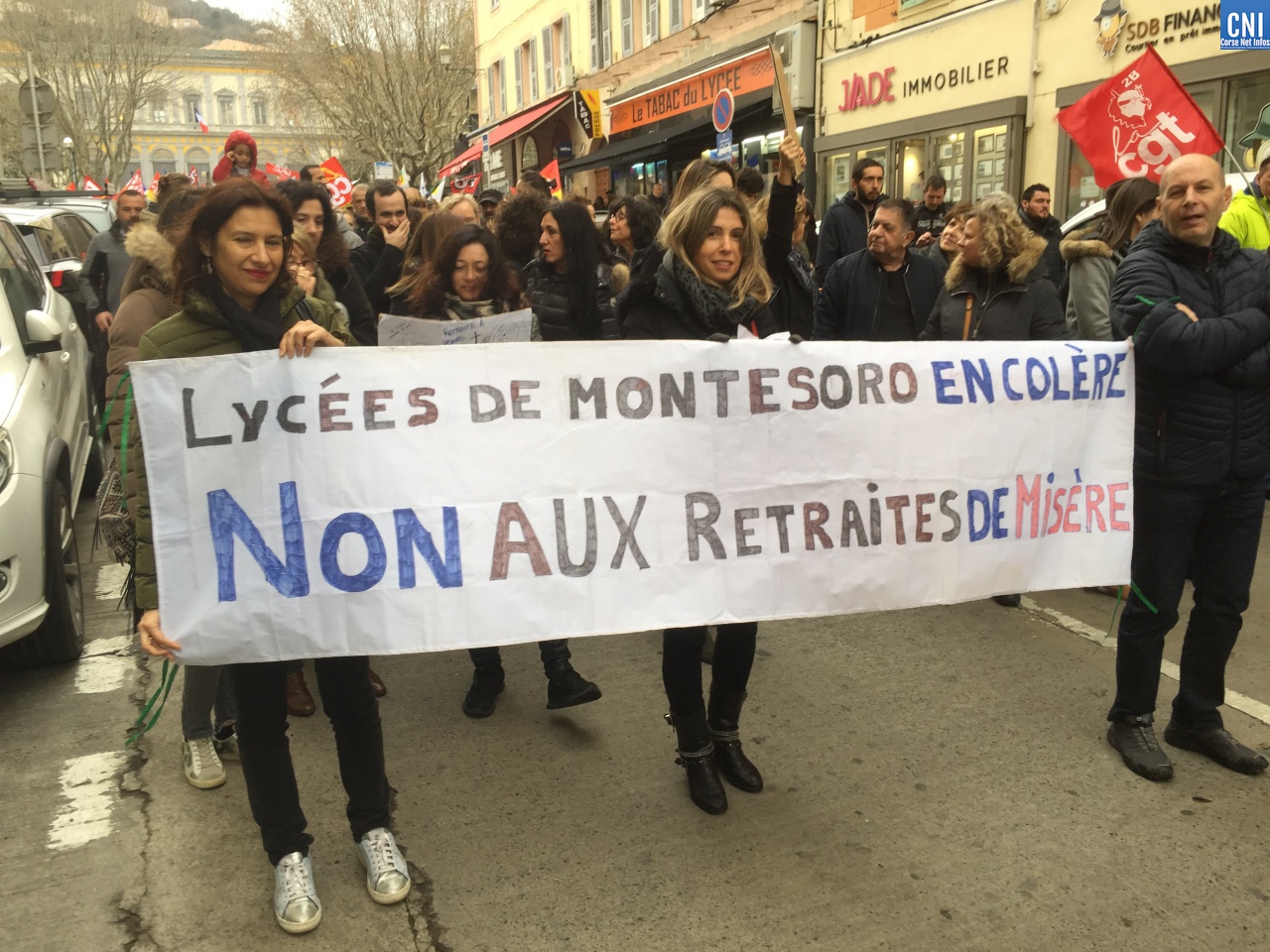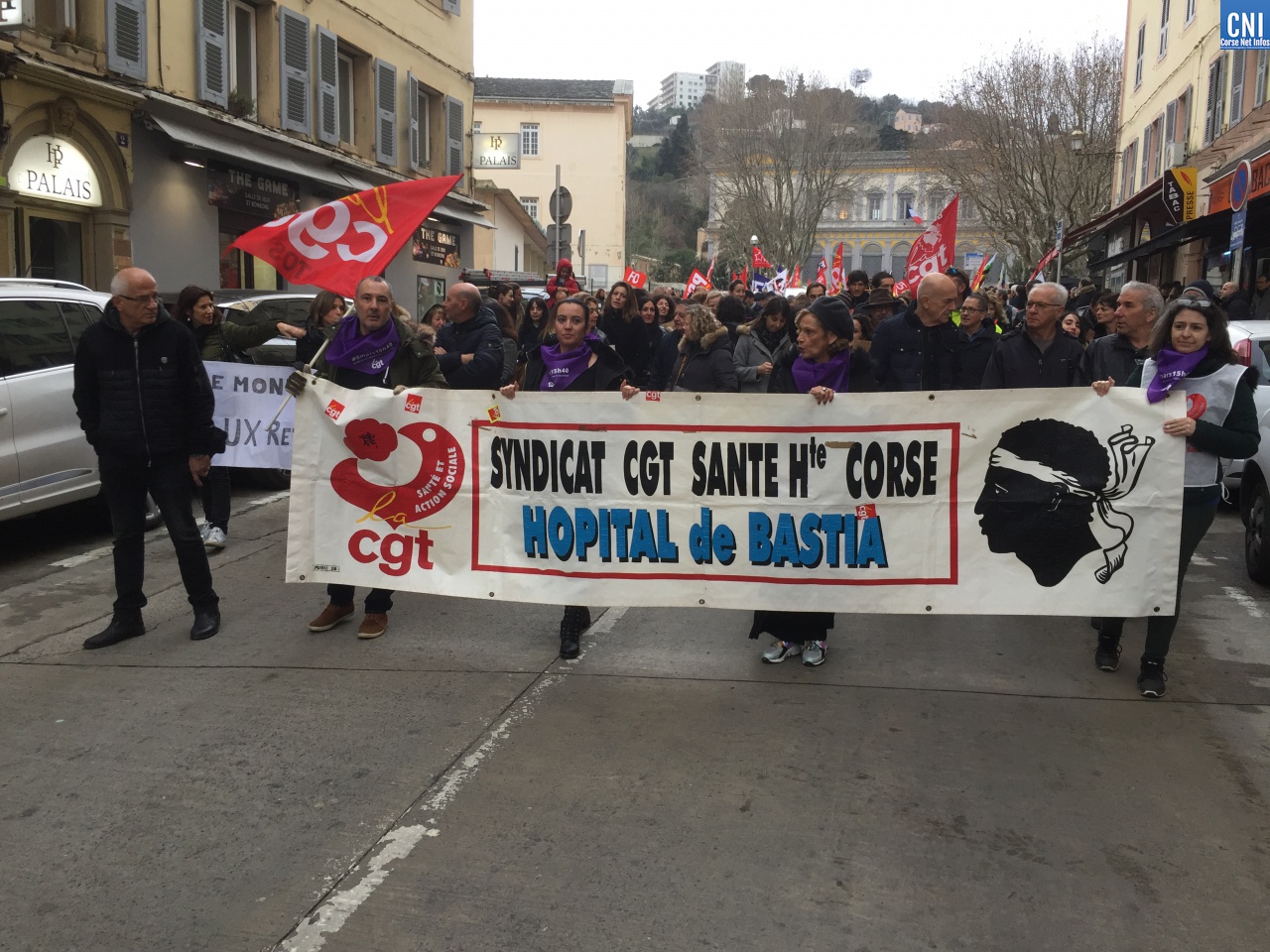 A l’intersyndicale CGT/FO/FSU/STC s’étaient joints aussi les avocats du barreau de Bastia, les douaniers garde-côtes, le syndicat « Solidaire » des finances, le Parti Communiste, des gilets jaunes, des lycéens.