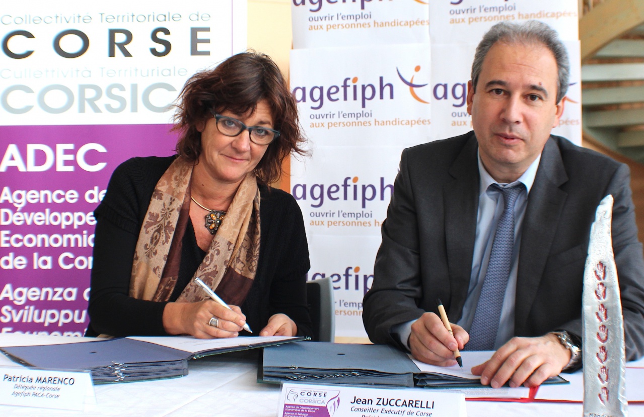 Une convention aux termes de laquelle la collectivité territoriale de Corse poursuit son action en faveur de l’insertion et du maintien dans l’emploi des personnes handicapées en aidant les entreprises à embaucher ce public et en soutenant les actions de l’opérateur régional, l’association A Murza (réseau Cap Emploi).