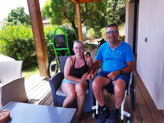 Mariée à Jérôme, atteint d’une maladie génétique, Sidonie confirme : « On a eu tellement de déconvenues... » On les rencontre sur la terrasse de l’une des Villas Lantana. Voilà deux ans que ces vacanciers venus de Haute-Savoie y réservent une semaine de vacances et ils ont déjà posé une option pour l’année prochaine. « La Corse, c’était mon rêve », se replonge Jérôme. « Ca faisait vingt ans qu’on essayait de venir, mais on ne trouvait rien d’accessible, raconte son épouse. On s’y prenait pourtant un an à l’avance... » Et en 2024, miracle : sur le site internet de l’association Tourisme & Handicap - chargée par l’État de développer la visibilité des hébergements accessibles - un premier nom apparaît en Corse, celui des Villas Lantana à Lecci. Sidonie et Jérôme sautent le pas. Aujourd’hui, ils ne le regrettent pas : « On est comme à la maison, tous nos besoins sont pris en compte, salue Sidonie, qui ne tarit pas d’éloges sur les Villas Lantana. En général, les gens qui proposent ce genre de structure d’hébergement ont un proche qui est atteint d’un handicap, ils sont donc sensibilisés. Ce n’est pas le cas de Périne et Guillaume, donc c’est d’autant plus incroyable qu’ils arrivent à anticiper nos besoins à ce point là. »