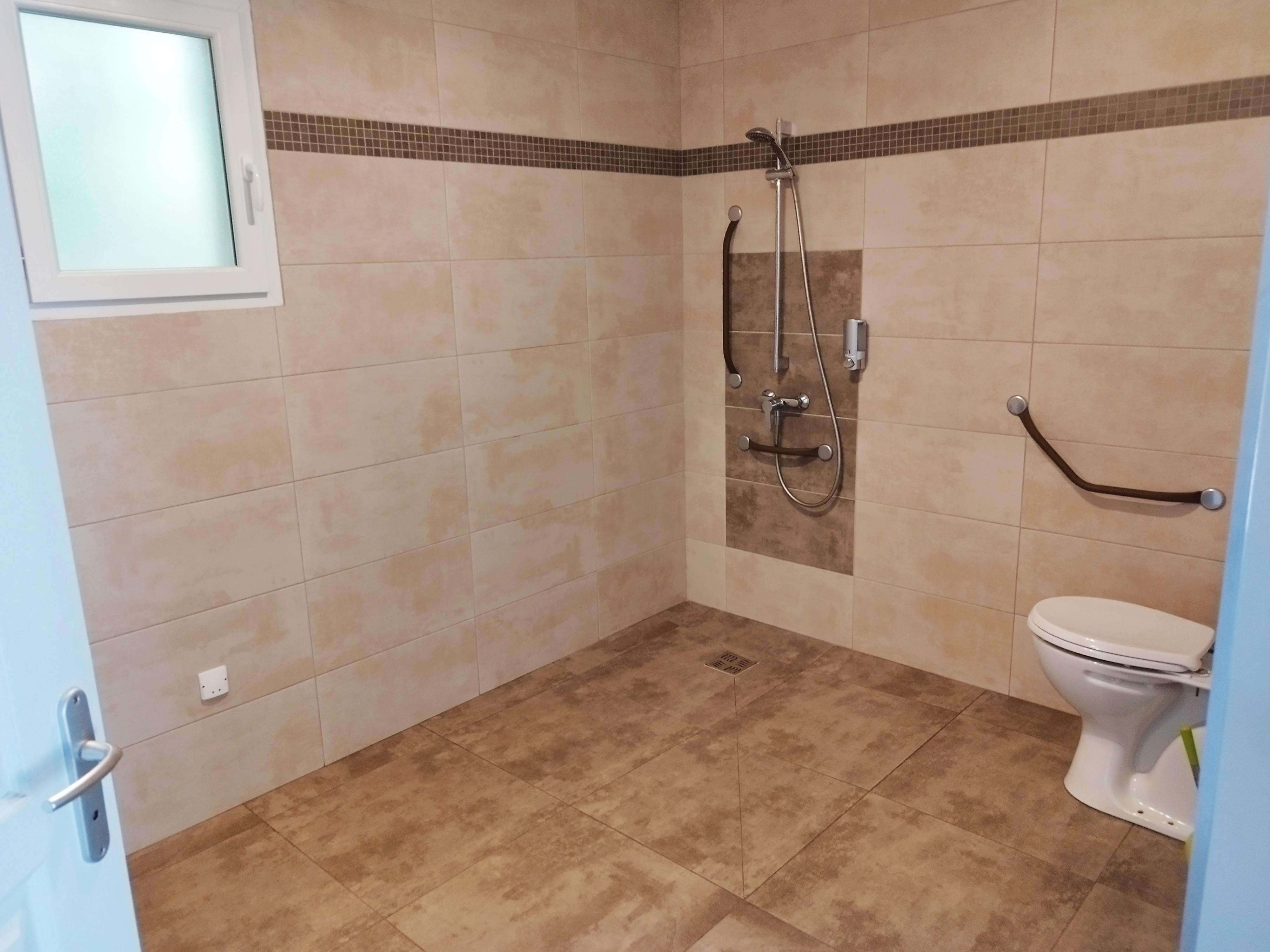 Les plans de construction du domaine intègrent dès le départ la dimension « handicap » du projet, ce qui n’est pas un mince effort, étant donné le coût du m² dans l’Extrême-Sud : « Une villa de deux pièces, c’était 38 m². La même, mais en version accessible, on passait à 45 m², soit 17 000 € en plus à débourser », précise Périne. En effet, qui dit logement à rendre accessible, dit nécessairement plus d’espaces à prévoir : autour du lit pour pouvoir changer de direction en fauteuil, dans la salle d’eau où trône une douche à l’italienne sans bac, dès l’entrée qui se fait via une grande baie vitrée au seuil réduit de 20 mm en hauteur… Périne raconte comment elle a dû continuellement veiller au bon déroulement du chantier : « Dans le BTP en Corse, on est très en retard sur les normes de construction pour les personnes à mobilité réduite. Il m’est arrivé de dire à un ouvrier de refaire, car il avait laissé une pente trop importante. Il m’avait répondu que c’était les normes habituelles... » A l’arrivée, les Villas Lantana ont été conçues pour faire face aux handicaps moteur, mental, auditif et visuel. Pour pouvoir héberger des personnes non-voyantes, Périne et Guillaume ont par exemple dû équiper les plaques de cuisson à induction de molettes, pour qu’il soit aisé, au toucher, de s’en saisir. « J’ai eu un mal fou à en trouver, car c’est plus trop à la mode ! » rit la propriétaire gestionnaire.
