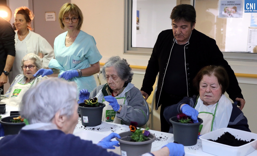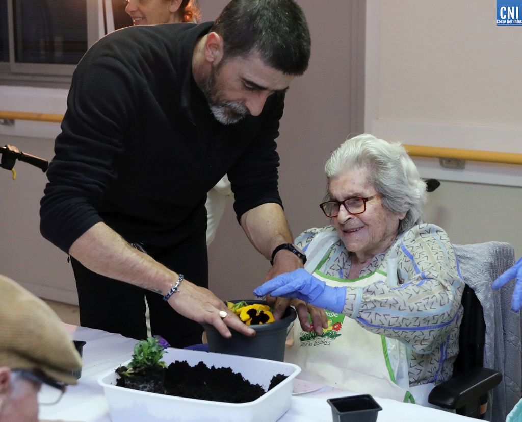 Autour d’une équipe de l’établissement particulièrement dévouée, José Scanavino, animateur social. « Jules Ottavi a expliqué en quoi tout cela consistait, précise ce dernier, les résidents ont ainsi planté des pensées et des branches d’immortelles dans des pots. Ils pourront les conserver dans leur chambre et les arroser. Tous ont été très satisfaits de cette démarche. Mais nous n’en sommes pas restés là puisque un oranger, offert par la Jardinerie a été également planté dans le patio. »