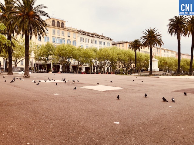 Sous le ciel gris ou éclatant d'avril, Bastia, comme les autres mille et une villes à travers le Monde, impactées par le Covid-19, a du mal à vivre confinée. Place Saint-Nicolas déserte abandonnée aux pigeons, passerelle et allée Est de la même place sans la moindre trace de vie, pas davantage âme qui vive boulevard Paoli, cours Pierangeli, rue Napoléon : que c'est triste Bastia au temps du confinement !