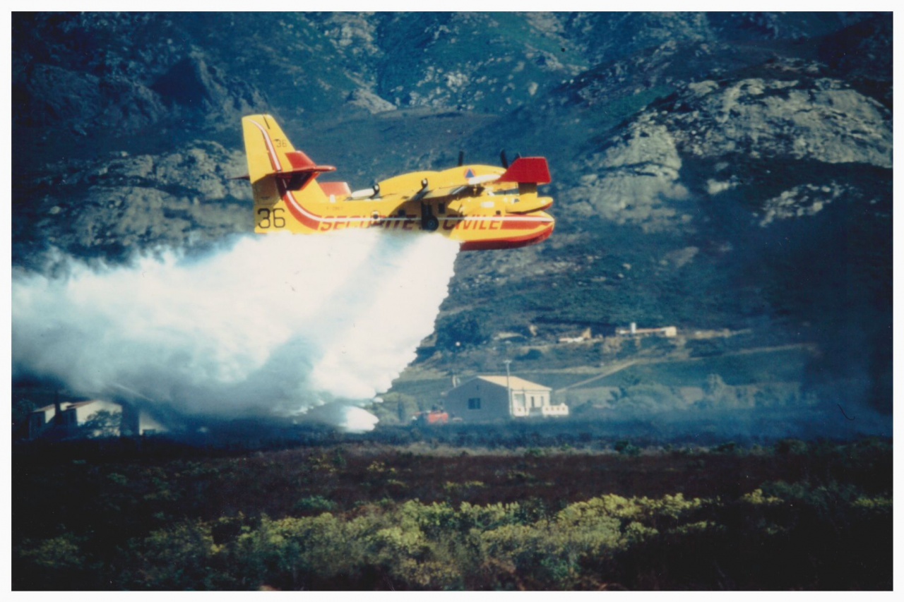 Le 1er aoû 2005 à 9h10, une patrouille de trois avions canadair décolle de l’aéroport d’Ajaccio pôur intervenir sur un feu de maquis à proximité de Calvi.