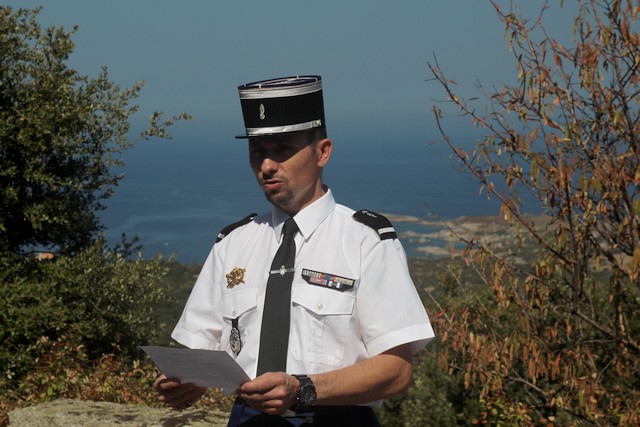 Au nom de la Communauté de brigades et de la Cie de Gendarmerie de Calvi-Balagne, l'Adjudant-chef Landais prononçait quelques mots pour rappeler le prix du sacrifice payé par le gendarme Beneito et de souligner le devoir de mémoire qui se traduit par la présence aujourd'hui des militaires, des autorités civiles et de la population.