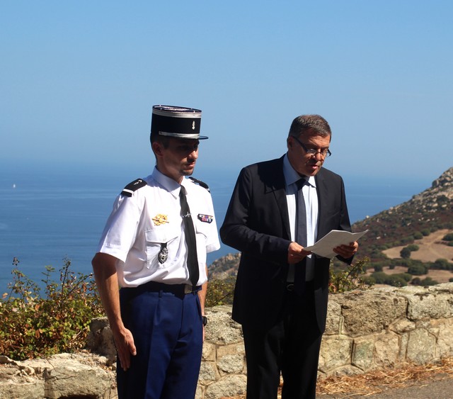 A 11 heures, alors que la circulation sur la Route Départementale était coupée par les gendarmes mobiles en renfort, un piquet d'honneur de la gendarmerie, représentant les brigades de Balagne prenait place, face aux autorités et à des civils qui ont souhaité participer à cette cérémonie du souvenir.