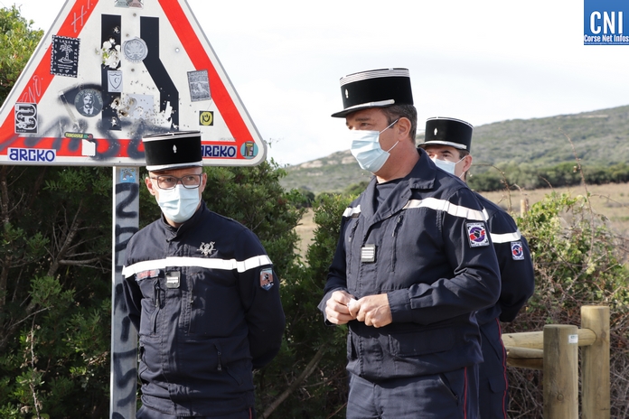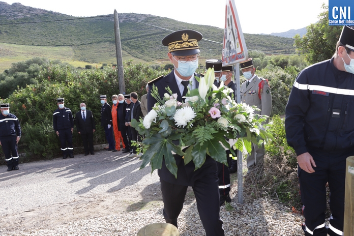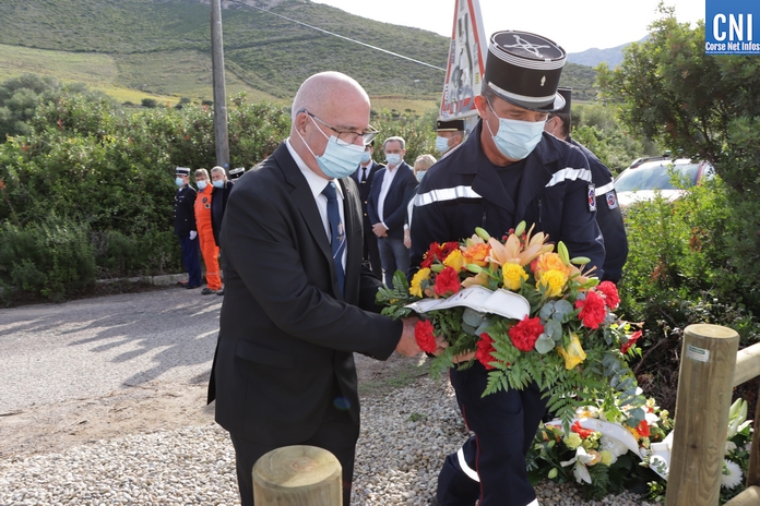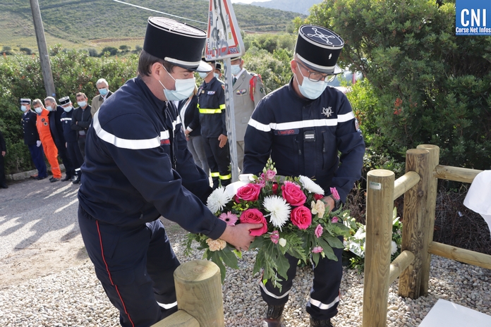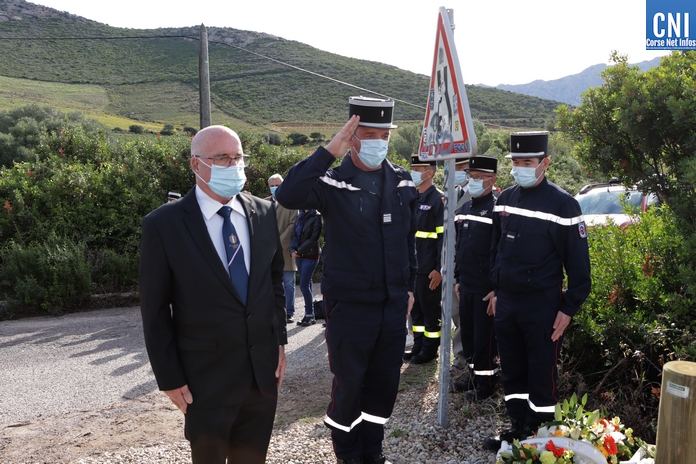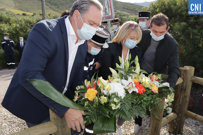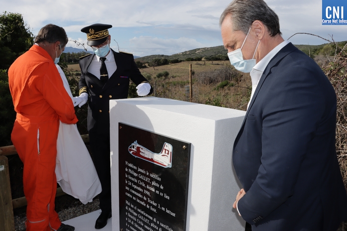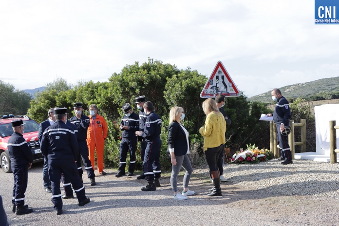 Sur la RD81 bis, longeant le littoral entre Calvi et Galeria, le temps de la cérémonie la circulation est interrompue par les gendarmes. La plaque de marbre était dévoilée par Alain Huet, ancien pilote, chef de secteur CL415 « Canadair » de la Sécurité Civile, Guy Armanet, Président du Conseil d'administration du SIS 2B et Florent Farge, sous-préfet de Calvi.