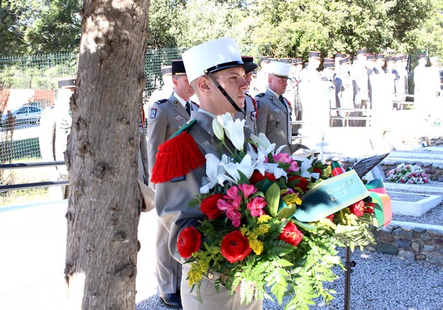 A 12 heures, en présence d'un piquet d'honneur, d'une délégation d'officiers et sous-officiers du Régiment et de l'amicale des anciens légionnaires parachutistes, le colonel Jean de Monicault, chef de corps du 2e REP de Calvi et l'adjudant (er) Heer (qui a été l'un des premiers à arriver sur place le jour de la tragédie et qui, initialement devait être dans l'avion) ont déposé une gerbe, après que les noms des victimes du 2e REP et de ceux de l'extérieur aient été énoncés un à un, suivi de la phrase : « Morts en service aérien commandé ».