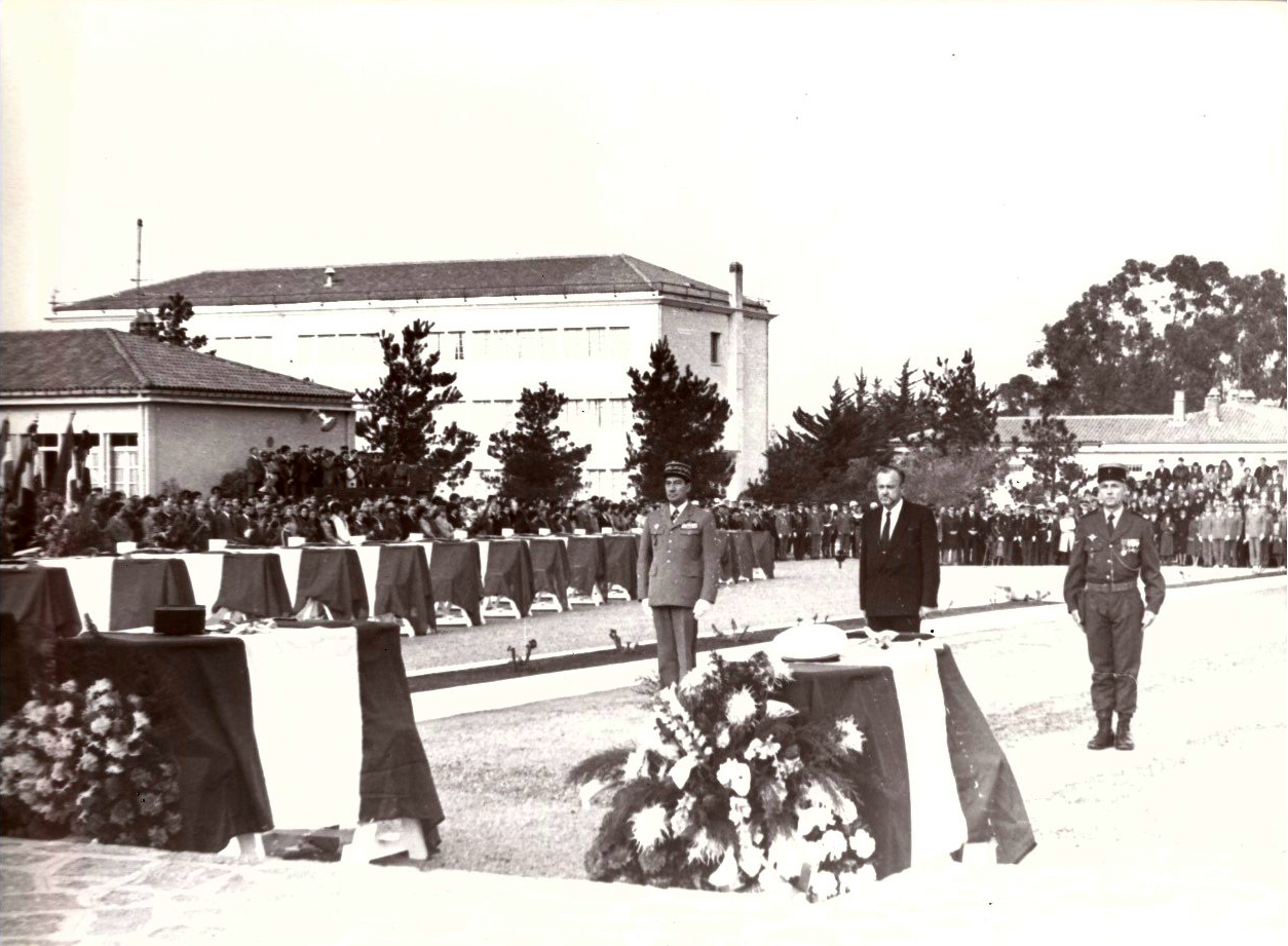 En revoyant vos silhouettes de guerriers, si jeunes, si souples, si décidés, me reviennent lancinantes; les paroles de notre vieille chanson légionnaire : "combien sont tombés, au hasard d'un bon matin, de nos camarades qui souriaient au destin" <Mes légionnaires, mes soldats, mes enfants de la 4ème compagnie, en vous conduisant aujourd'hui à votre dernière demeure, moi, votre colonel je reprends avec tout le régiment, la suite de ce chant de guerre : Nous aussi : "nous tomberons sans doute. Nous tomberons ou vaincrons au combat?"