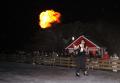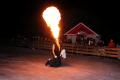 A 18h30, alors que la foule se pressait tout autour de la patinoire et du village de Noël, soudain, les lumières de la ville se sont éteintes pour laisser la place à un cracheur de feu qui a offert sur la glace un spectacle féérique.