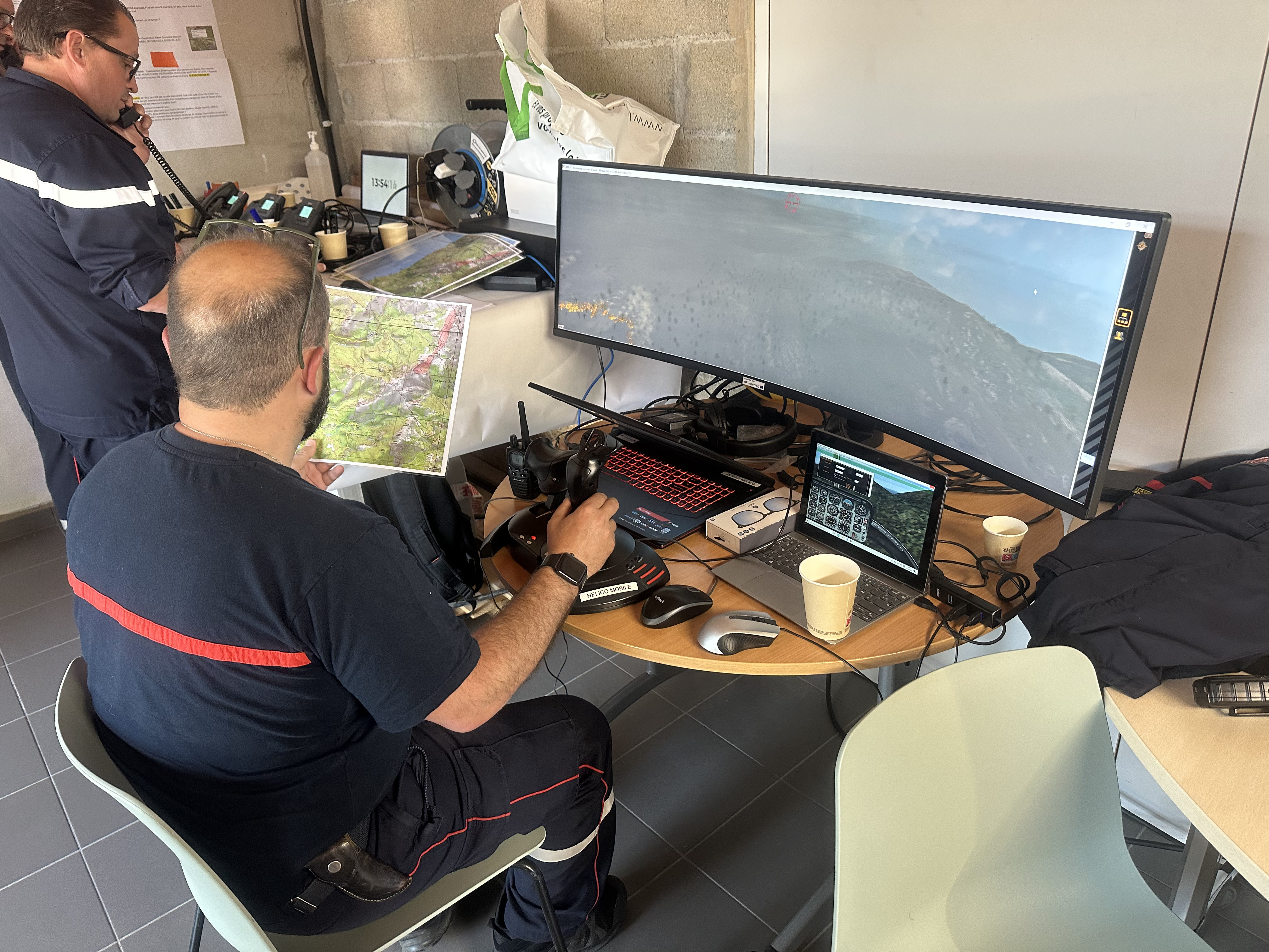 Pour appuyer cet entraînement, les pompiers ont utilisé le simulateur Serious Game, déjà expérimenté à Furiani en 2023 lors d’un précédent exercice. L’outil numérique permet de modéliser les zones à risque, ici les communes de Ville-di-Pietrabugno et de San-Martino-di-Lota, virtuellement menacées par un incendie.