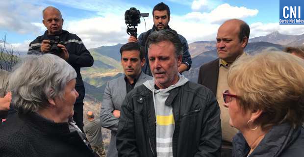 L’écoute également du monde agricole. Avant d’arriver à Chiatra, Jacqueline Gourault s’est arrêtée à la bergerie ravagée par les flammes. Joseph Colombani, président de la Chambre d’agriculture, laisse éclater sa colère : « La ministre vient constater la misère de ce pays, l’état d’abandon de l’intérieur, le dysfonctionnement au niveau foncier, le manque de coordination pour faire appliquer les simples règles de démaquisage et d’entretien. Elle a vu des agriculteurs installés de manière précaire qui vivent dans une caravane qui a brûlé, des bergeries sans eau, ni électricité, un chemin d’accès complètement envahi par la forêt… Dans quel état est mon pays ! C’est une honte ! J’ai honte de ce que je vois. Ici, on a frôlé la catastrophe. Ailleurs, on va la connaître ! Ça ne peut pas durer ! Il faut un vrai plan pour l’intérieur, une vraie volonté. Ce qui arrive, c’est un échec ! ». Il appelle à profiter de l’émotion pour commencer à travailler concrètement et à mettre en place des moyens de prévention. « Il faut des techniques d’intervention, comme la DIG (Déclaration d’intérêt général), et une méthode de travail en coalition, c’est-à-dire apprendre à faire travailler ensemble les Chambres d’agriculture, les SDIS, les sapeurs-forestiers et l’Office de l’environnement. Les moyens existent, mais chacun reste dans sa chapelle et travaille pour son propre compte, alors qu’il faut travailler pour l’intérêt collectif d’un territoire ».