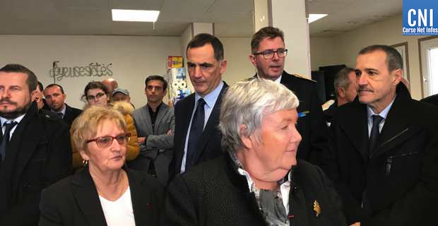 La ministre Jacqueline Gourault, accompagnée des élus locaux, rencontre les habitants de Chiatra où onze maisons ont brûlé.