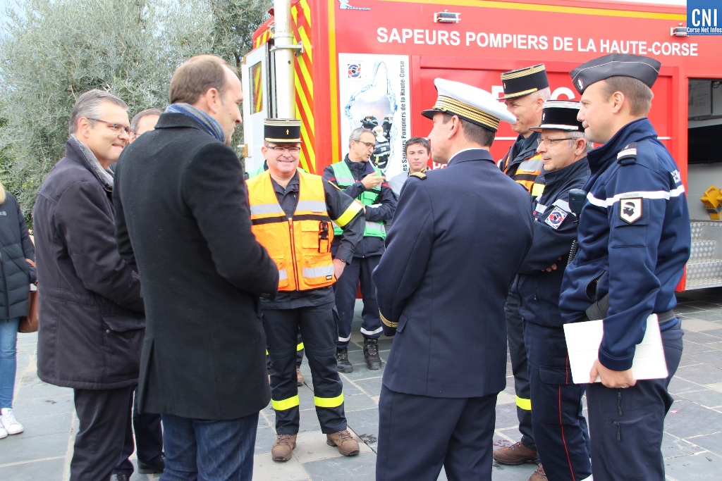 Yannick Castelli, maire de Penta-di-Casinca, Ronan Léaustic, sous-préfet de Corte, le colonel Jean-Jacques Peraldi, directeur du Sis 2b par intérim etc... ont suivi avec attention l'exercice