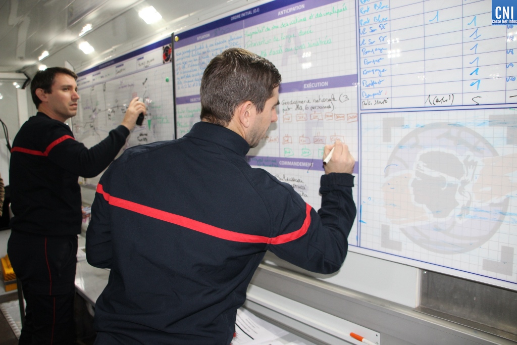 Problèmes d’hébergement consécutifs à de nombreux relogements de la population sinistrée, déploiement d’un camp de base pour les sapeurs-sauveteurs de l'UIISC 5 de Corte. Nouvelle situation à appréhender au moment où la situation bascule en vigilance rouge. Engagement de moyens nationaux au terme des reconnaissances effectuées par le SIS 2B... Rien n'a manqué pour "corser" l'exercice.