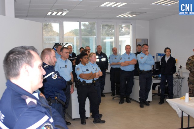 L'adjudant-chef Landais commandant par suppléance la communauté de brigades, a accueilli les invités (élus, police municipale, PAF, REP, SNSM...), présenté les gendarmes nouvellement affectés à la communauté de brigades et fait visiter le nouvel "espace de détention".