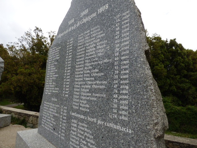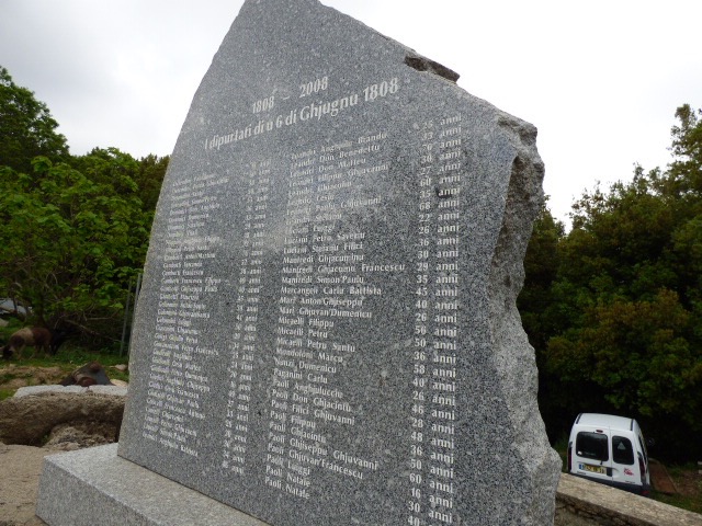 Après l'office, une procession , à laquelle ont participé de nombreux fidèles, s'est rendue jusqu'au monument qui à l'entrée du village rappelle ce triste jour du 6 juin 1808. Tandis que le Dio vi salvi Regina était entamé par chanteurs et processionnaires, l'abbé Renucci a procédé à la bénédiction des trois stèles sur lesquelles sont inscrits les noms des déportés. Un travail de mémoire rendu possible par les recherches historiques de Jacques Denis et de Jeanie Paoli.