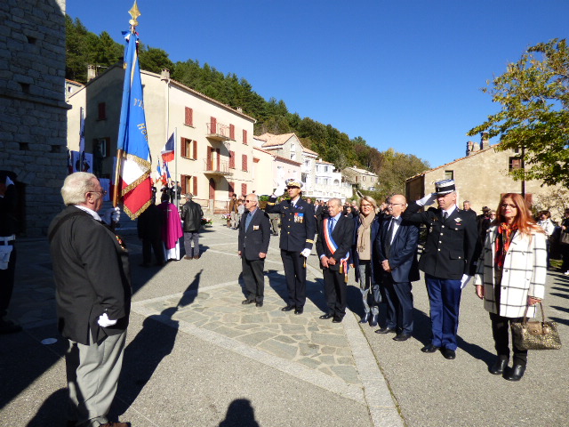 En ce début de matinée de samedi, les rayons du soleil éclairent déjà largement la statue du poilu qui trône en plein centre du nouveau monument aux morts. Le soldat figé en ce lieu pour l'éternité semble fixer l'horizon d'un regard plein d'espoir. Sur sa main droite la colombe de la paix s'apprête à prendre son envol. Plein d'espérance et d'amour, ce soldat peut l'être, lui qui porte les souffrances et les malheurs de tous ces noms inscrits sur ces plaques de marbre gris. Ces soldats corses tombés au champ d'honneur en défendant une conception de la liberté. En effet, cet homme symbole d'une horreur que l'humanité ne devrait jamais reproduire, vient d'être honoré au cours de l'homélie célébrée en la paroisse du village par l'abbé Renucci. Citant Saint Matthieu le prêtre a déclaré: " Heureux ceux qui ont faim et soif de la justice, ils seront rassasiés. Ces hommes ont mené un combat juste. Ils sont assurément auprès de Dieu".