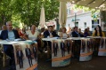 C’est au tour d’Hélène Salge de prendre la parole, un peu moins sûre d’elle que ses colistiers, elle débute par une justification : « On est une vraie équipe, on n'est pas là pour la parité seulement ». Puis réclame « un peu d’ordre ! On veut une ville agréable et propre et ouvrir de nouveaux parcs... Bastia est un ensemble. Elle doit devenir un ville plus solidaire ! » Mais sa voix est couverte par des jeunes un peu bruyants qui, sur la Place, ont apparemment du mal à le respecter cet “ordre” qu’elle évoque. Livia Graziani-Sanciu, la jeune colistière, âgée de 24 ans, de Jean-Martin Mondoloni, elle aussi, croit en l'union : « Je veux aider la jeunesse, les jeunes talents et ils sont nombreux. J’imagine, par exemple, un partenariat avec de grandes communes nationales ou internationales ».