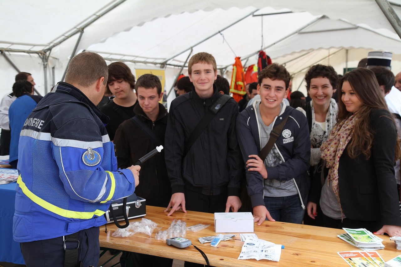 Sécurité et prévention routière ont présenté des ateliers centrés sur les risques de l’alcool (lunettes spéciales provoquant un comportement proche de l’état d’ébriété avec parcours balisé au sol), et l’utilisation d’un réactiomètre informatique. Le simulateur deux roues a eu, comme à l’accoutumé un franc succès auprès des jeunes collégiens et lycéens qui ont pu aussi se familiariser, avec les motos exposées de la police et de la gendarmerie nationale.