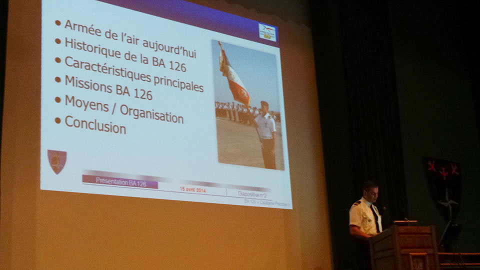 Mardi à l'heure de la présentation de la base - le deuxième porte-avions français en Méditerranée ainsi qu'il la rappelé - le colonel Groën a refait l'histoire de la BA 126 depuis 1952 date de la décision prise par l'OTAN de créer 4 bases aériennes d'entraînement en Europe, jusqu'à nos jours avec sa participation à des opérations majeures en Bosnie, au Kosovo, en Lybie, Serval, Sankaris.