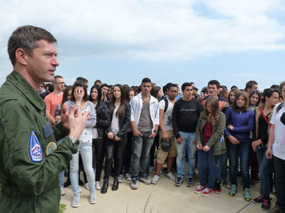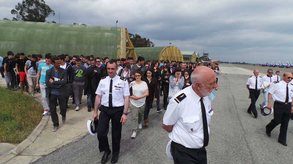 Avec d'abord la Patrouille de France qui peaufine son entraînement à Solenzara. Un décollage tout en douceur quelques passages puis retour à la base en raison d'un petit incident technique. Mais collégiens et lycéens ne s'en sont pas moins entretenus avec les pilotes venus, très simplement, à leur rencontre pour les entretenir de leur expérience et de leur parcours.