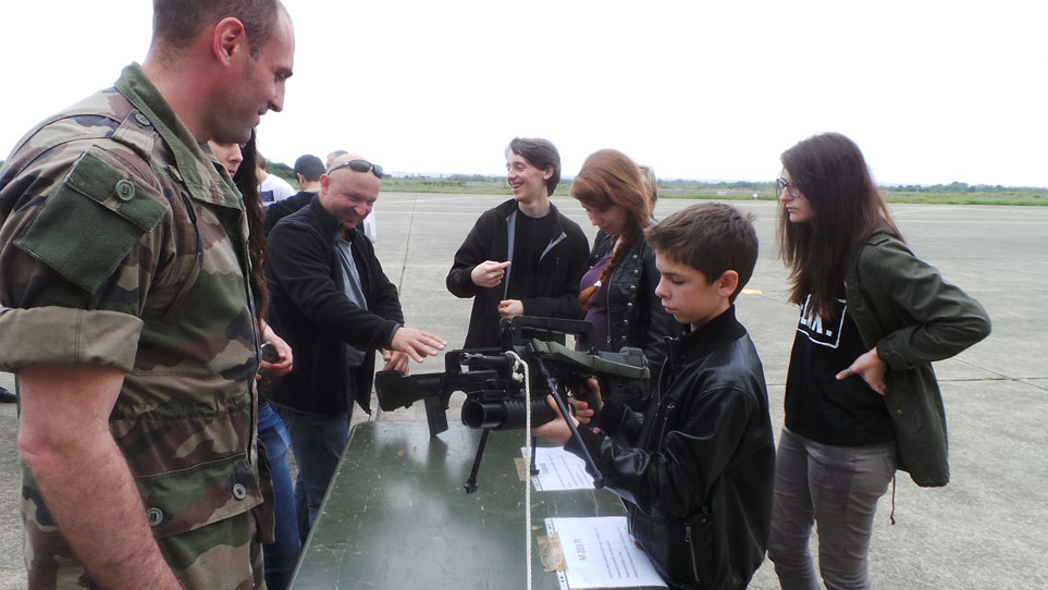 Les "travaux pratiques" se sont poursuivis avec la présentation de l'escadron d'hélicoptères et de l'escadron de ciblerie : une bonne occasion pour voir de près les principaux appareils de la base mais aussi l'armement, que l'on a pu manipuler, dont ils sont dotés.