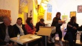 Un jeu : une image à sélectionner, à mémoriser et qui pourrait nous représenter : une Play station 4, une gourmette avec une main d‘enfant, une montagne, un taureau, un dolmen, un jet privé, un couteau, une soupière… Le jeu se poursuit : un questionnaire « Portrait chinois » que chacun remplit, passant dans la salle et portant sur « si j’étais un animal, un vêtement un film, une couleur, une plante….que serais-je ? » Le public s’est plu au jeu avec amusement en remplissant les cases. Puis Stéphanie présidente de la Croix rouge, commence à lire les portraits. Très vite l’on réalise que ces portraits sont ceux des détenus, des proches de détenus ou employés à la maison d’arrêt et non ceux des participants dans le public.