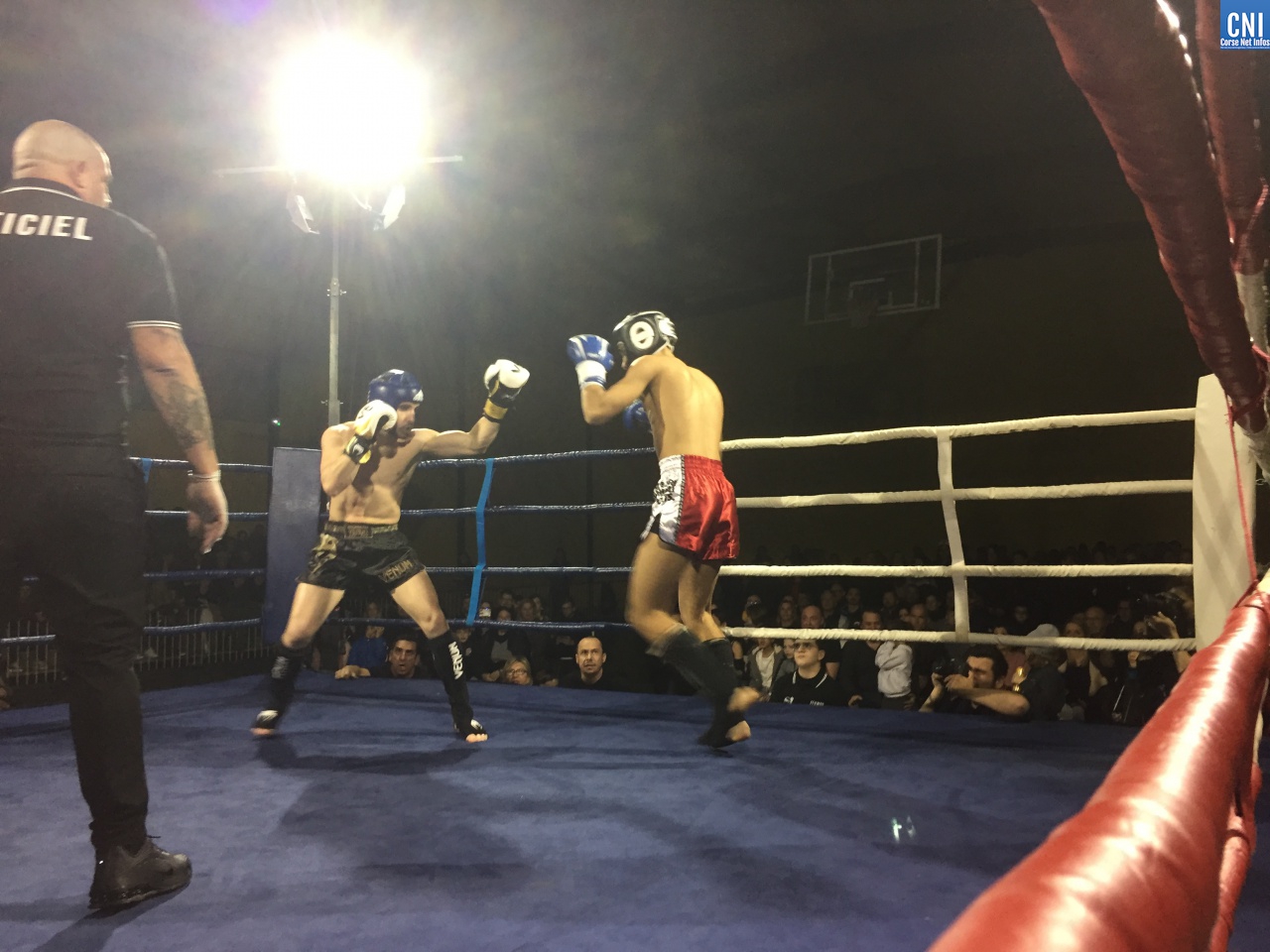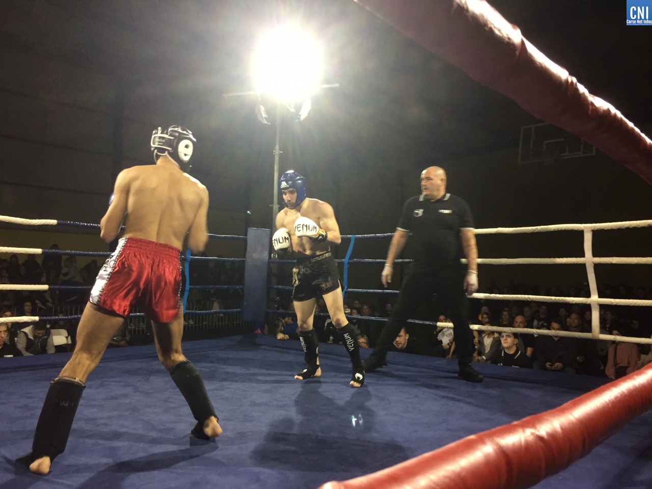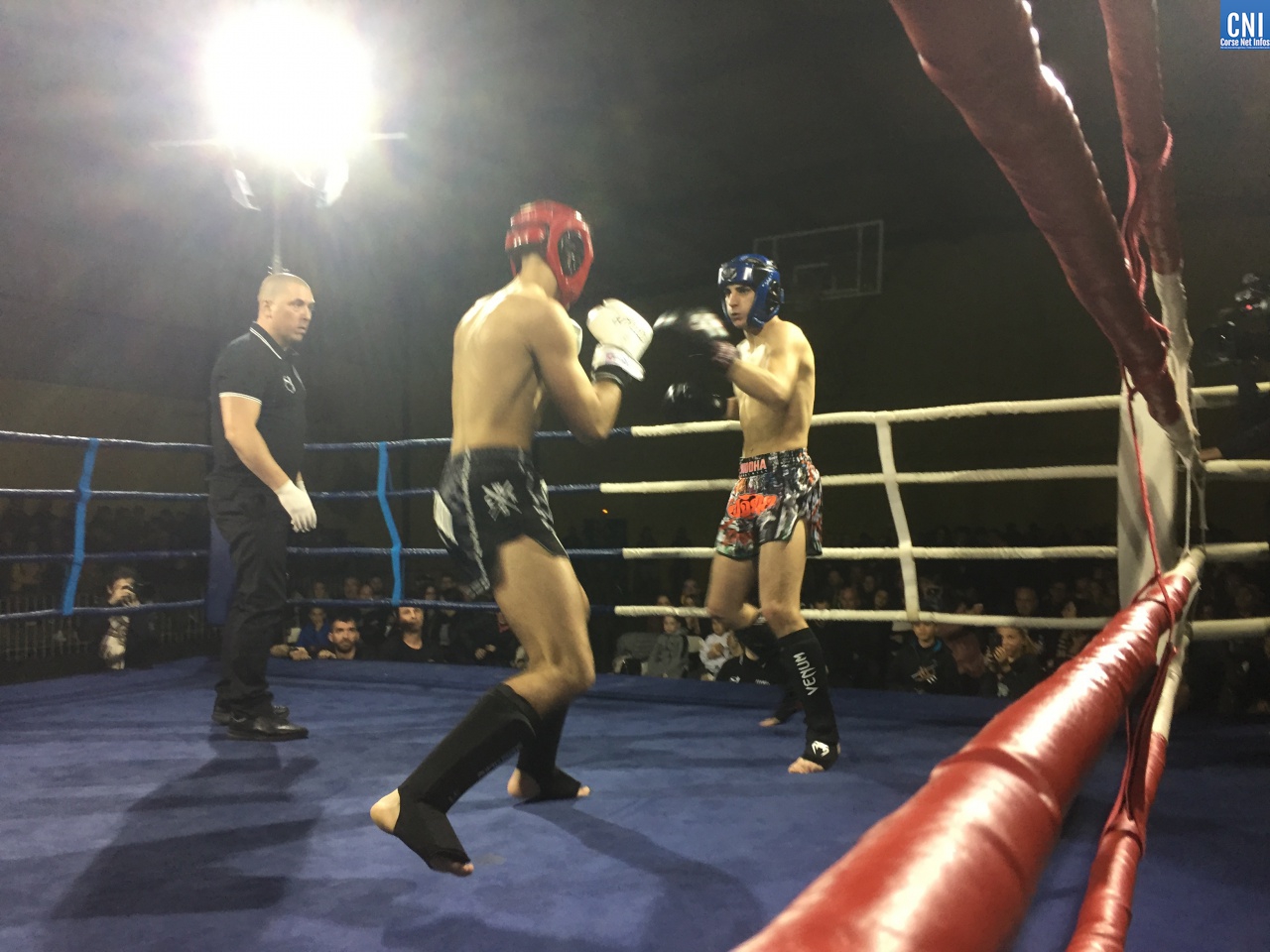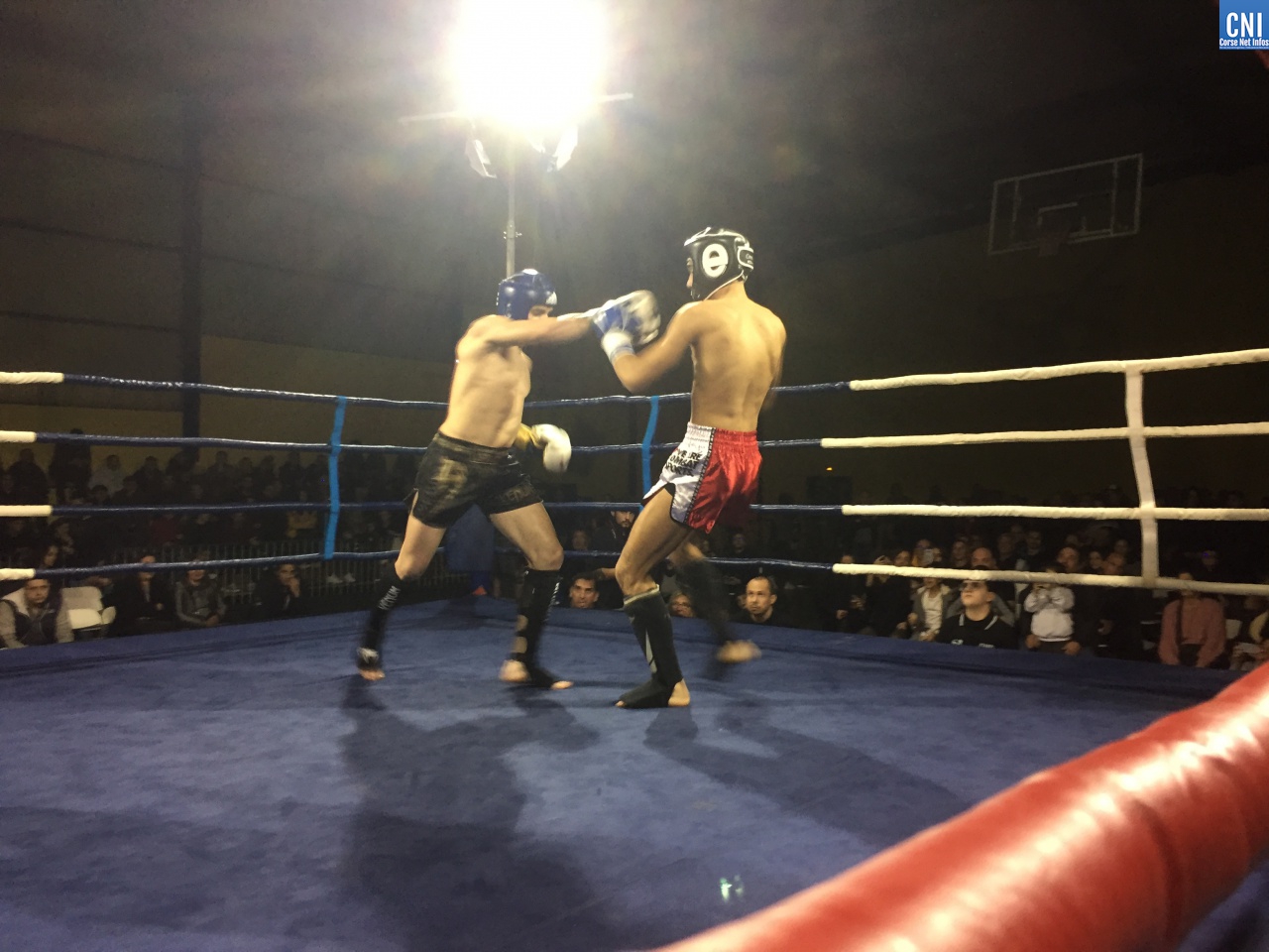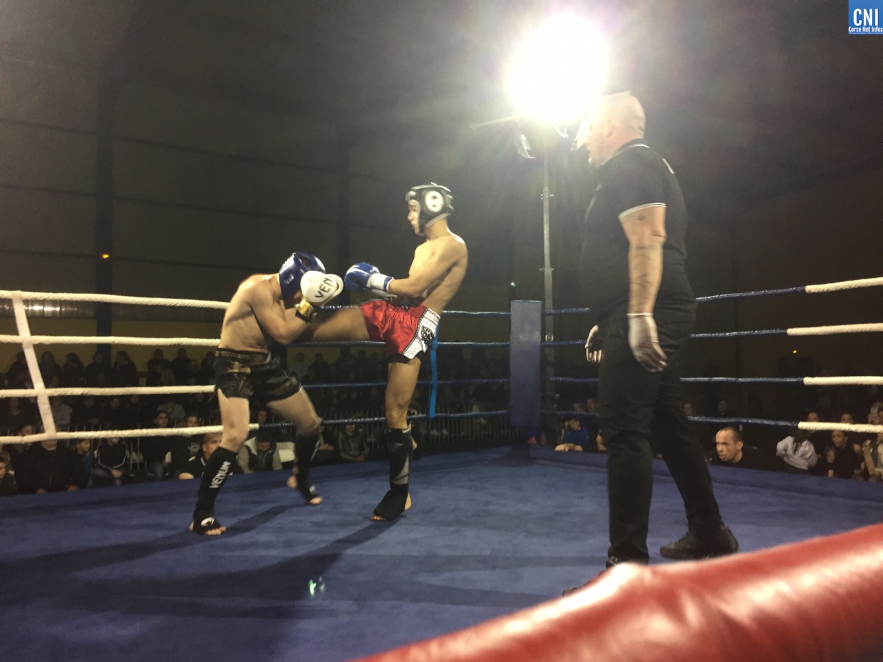 Belle affiche pour le 3ème combat puisqu’il opposait l’ajaccien Stéphane Genta (Ajaccio KB), champion de France junior de Muay thaï, au bastiais Hugo Boigeol (KTP Scola), champion de France junior de pancrace. Au terme de 3 rounds très disputés par les deux jeunes insulaires, le Bastiais était donné vainqueur (décision partagée des juges). Juste avant l’entracte, c’était au tour du «régional de l’étape», AlexVasta (KBC Lucciana), de se produire devant son public. Face à lui le florentin Elios Haruni.