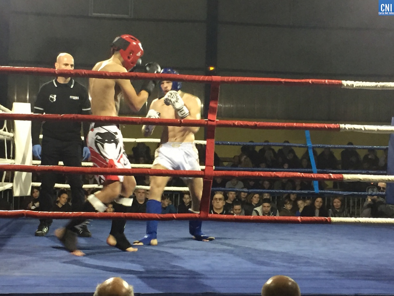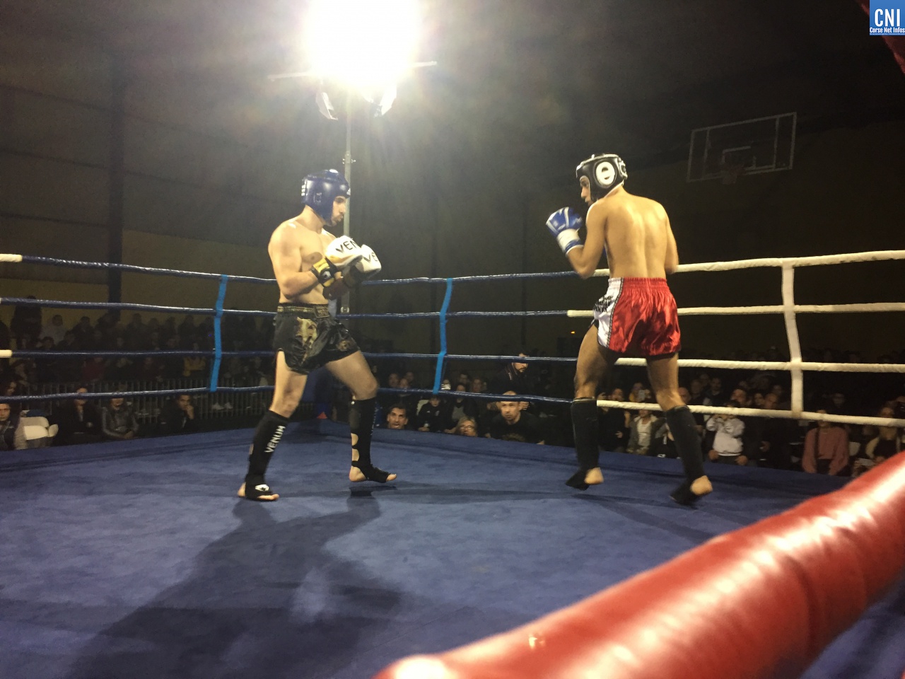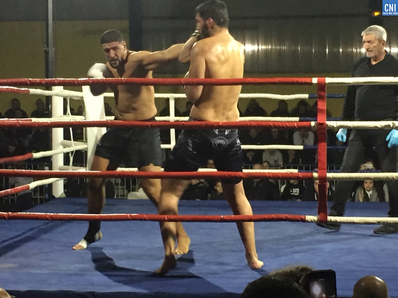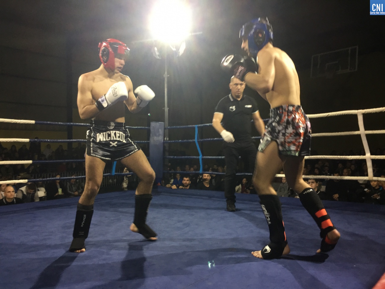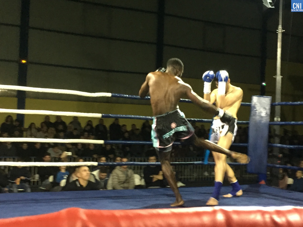 Belle affiche pour le 3ème combat puisqu’il opposait l’ajaccien Stéphane Genta (Ajaccio KB), champion de France junior de Muay thaï, au bastiais Hugo Boigeol (KTP Scola), champion de France junior de pancrace. Au terme de 3 rounds très disputés par les deux jeunes insulaires, le Bastiais était donné vainqueur (décision partagée des juges). Juste avant l’entracte, c’était au tour du «régional de l’étape», AlexVasta (KBC Lucciana), de se produire devant son public. Face à lui le florentin Elios Haruni.