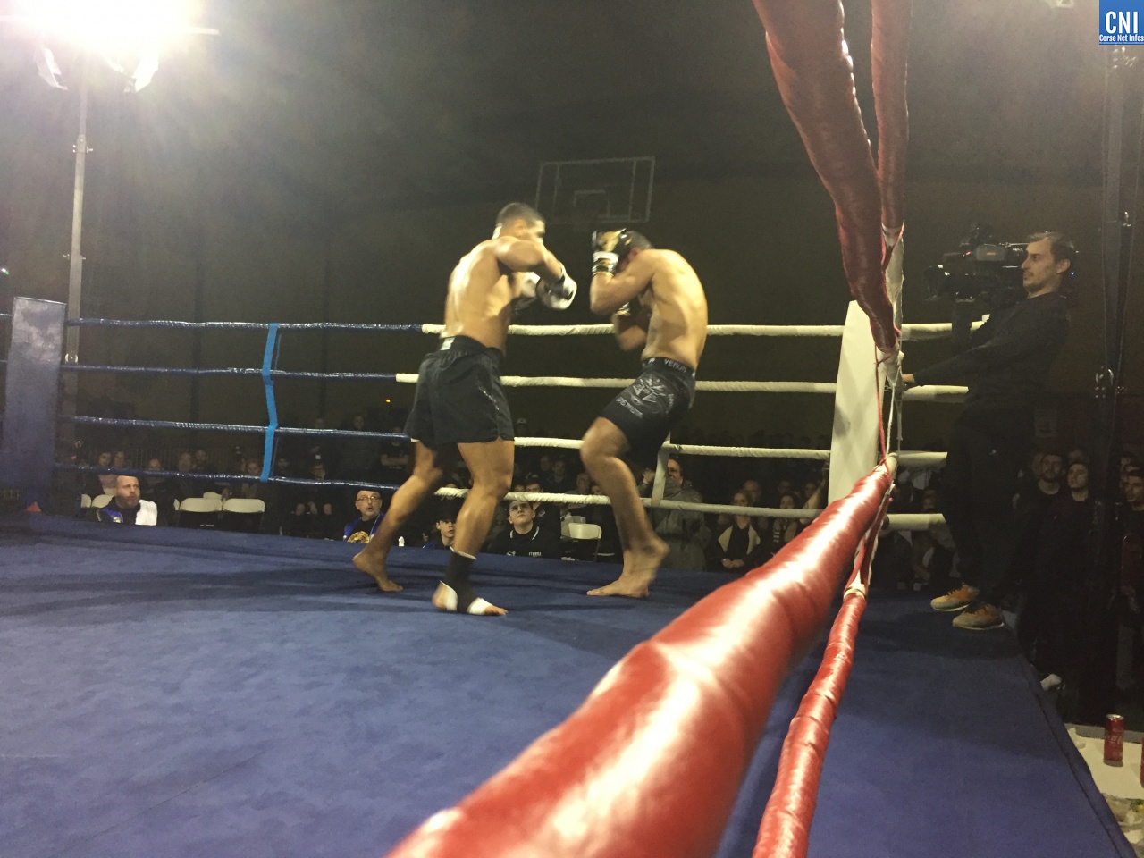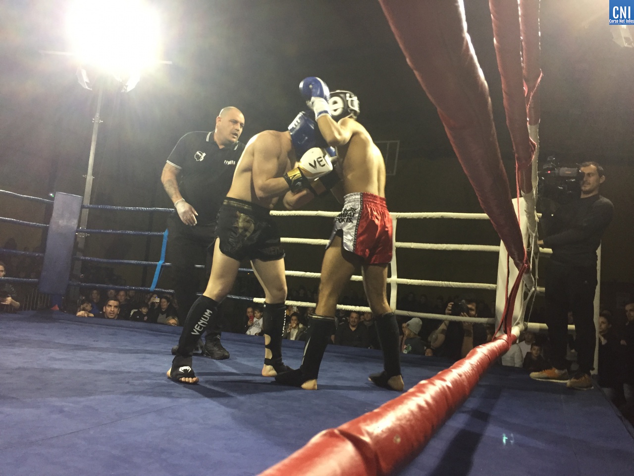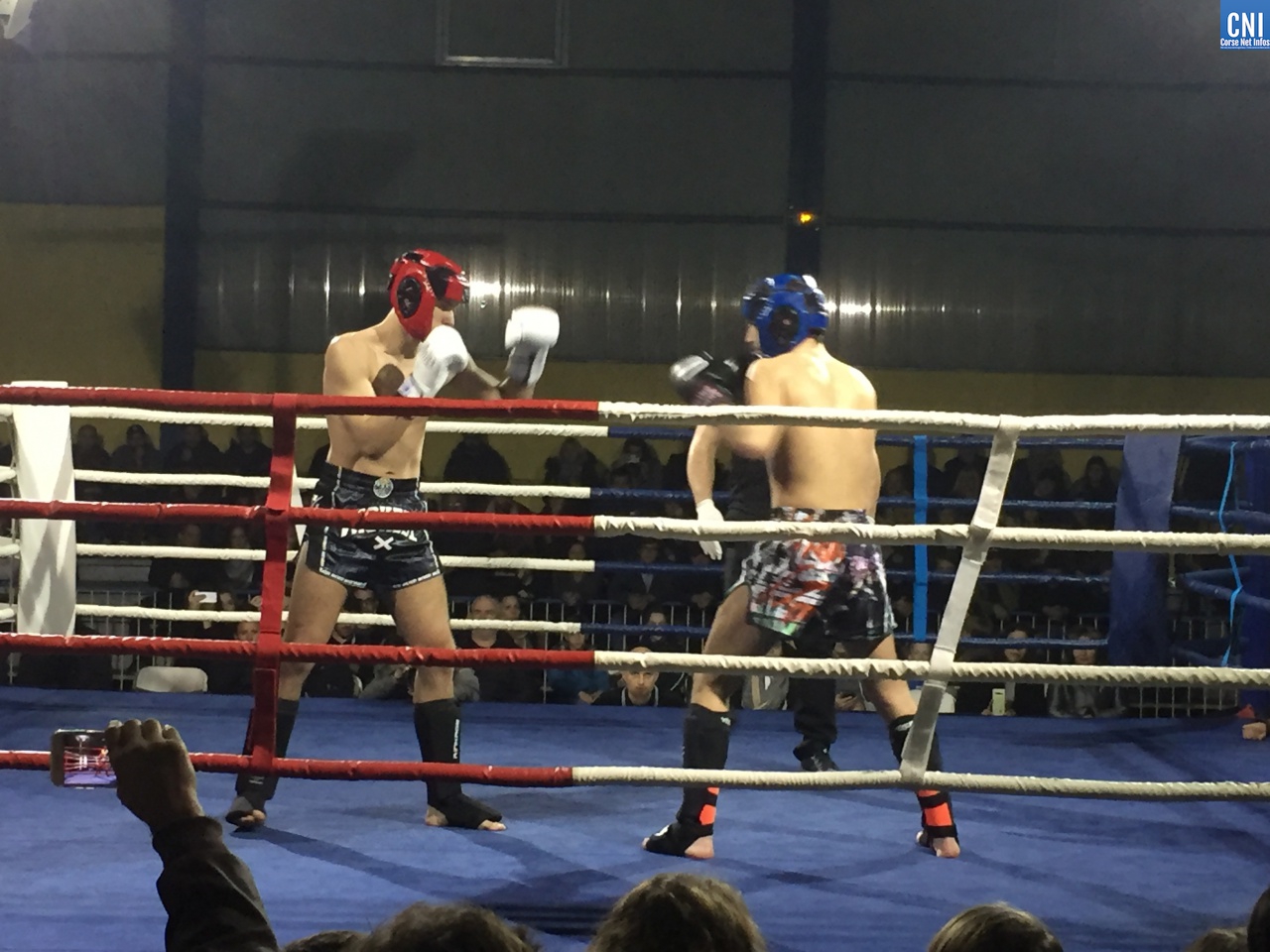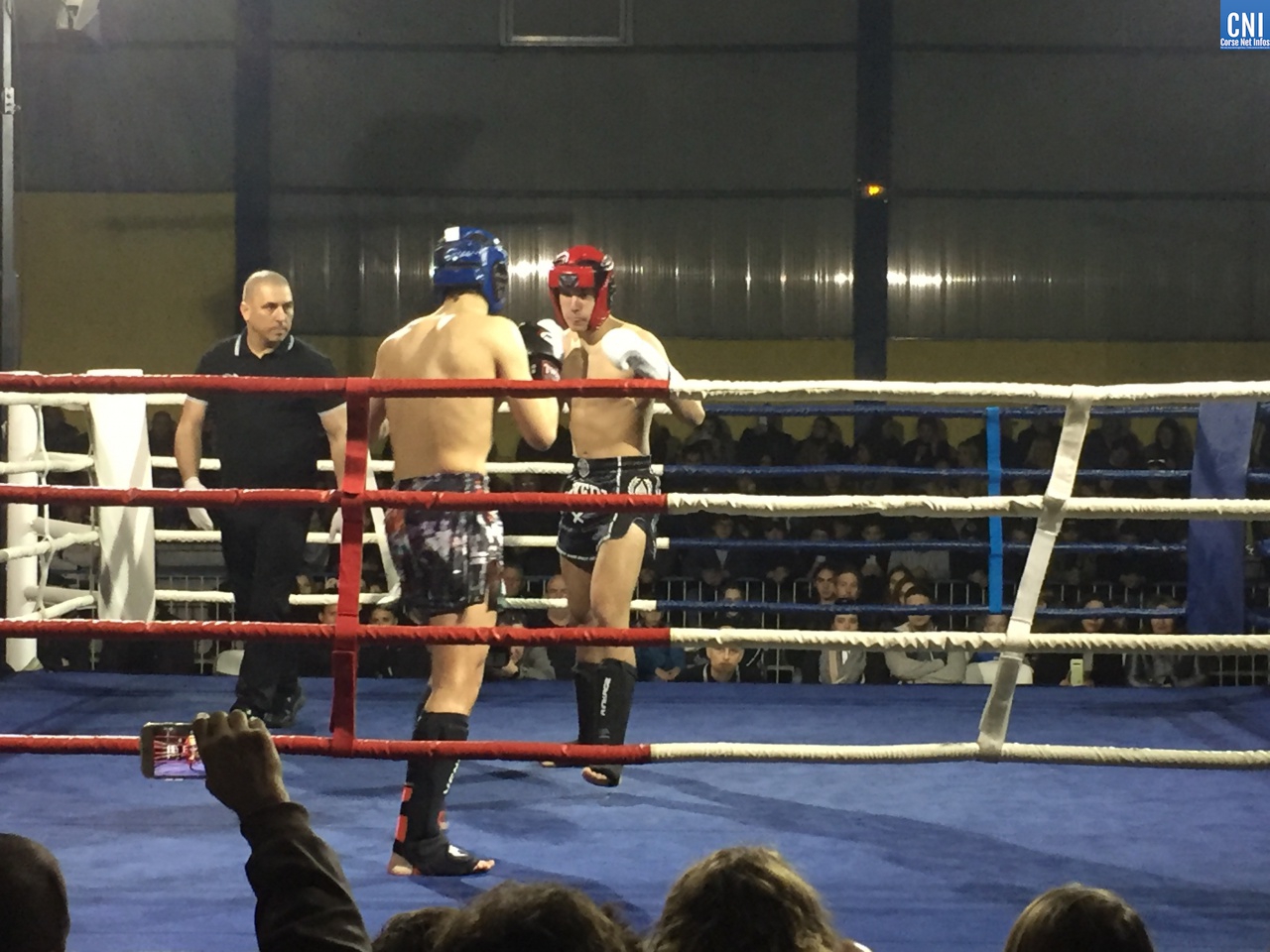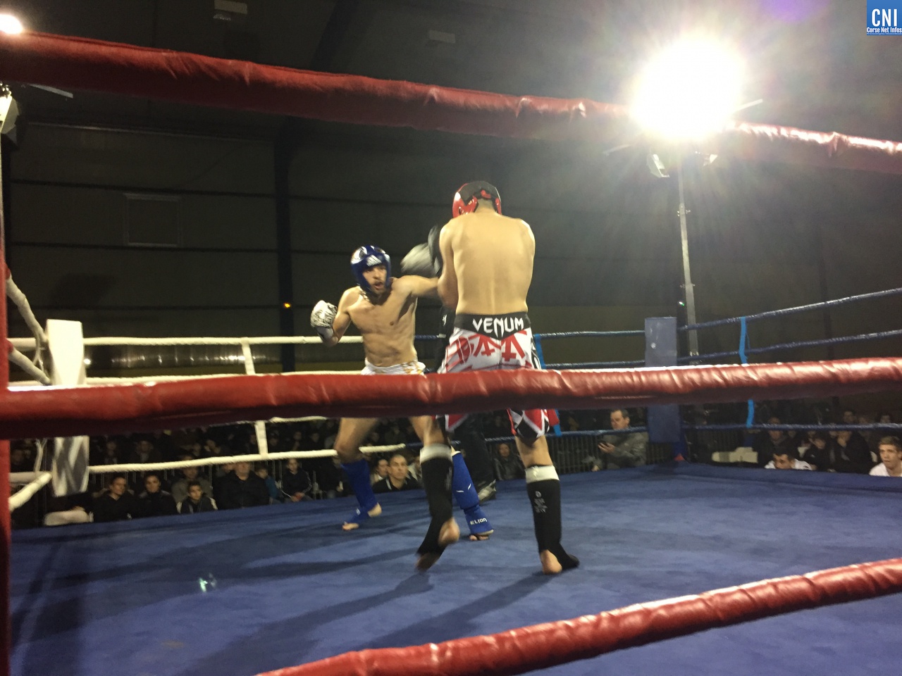 Belle affiche pour le 3ème combat puisqu’il opposait l’ajaccien Stéphane Genta (Ajaccio KB), champion de France junior de Muay thaï, au bastiais Hugo Boigeol (KTP Scola), champion de France junior de pancrace. Au terme de 3 rounds très disputés par les deux jeunes insulaires, le Bastiais était donné vainqueur (décision partagée des juges). Juste avant l’entracte, c’était au tour du «régional de l’étape», AlexVasta (KBC Lucciana), de se produire devant son public. Face à lui le florentin Elios Haruni.