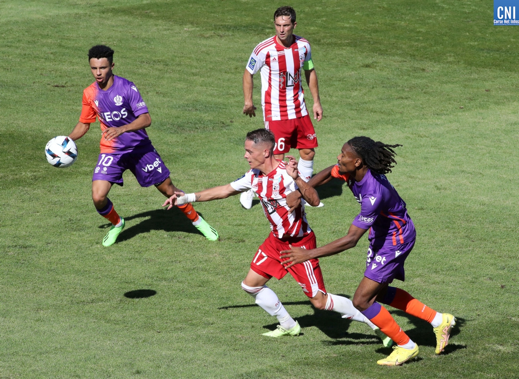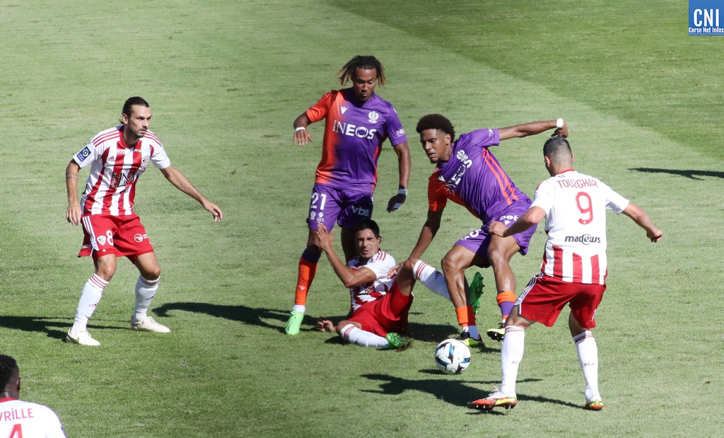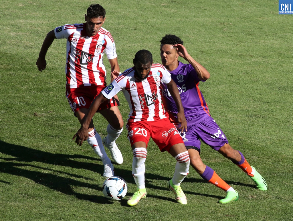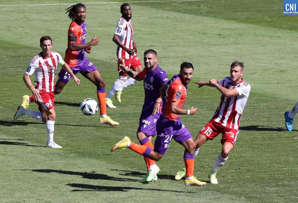 On note même deux grosses occasions ajacciennes d’entrée de jeu (Hamouma trop court face au portier visiteur et Touzghar de la tête).