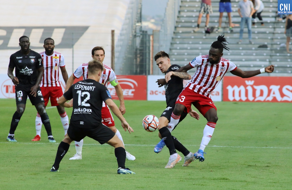 Après un peu plus de quinze jours d’arrêt et quasiment trois semaines à Timizolu, l’ACA retrouvait sa verte pelouse, son public toujours aussi présent sans rien perdre, ni de sa qualité de jeu, ni de ses vertus mentales. Les Ajacciens vont le démontrer tout au long de la partie. Un vrai match de haut de tableau avec du rythme, deux équipes joueuses en première période. Et des Normands qui perdront leurs nerfs au cours d’un second acte beaucoup plus musclé pour une formation caennaise à court d’arguments et logiquement sanctionnée de deux cartons rouges. L’ambiance des grands soirs à Coty et un match au parfum de L1...