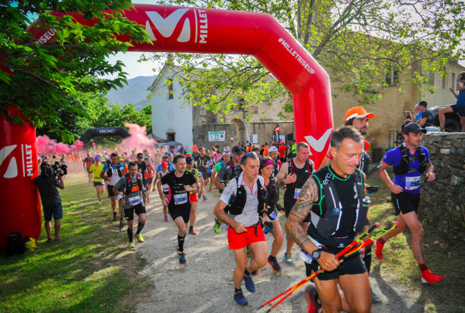 La marche : 7 km. Départ du Couvent— Pont d’Ortale — Traversée du hameau de Terrivola (ravitaillement) — Puis direction Ortale (ravitaillement). À partir du village d’Ortale le parcours rejoint les deux courses pour une arrivée commune.