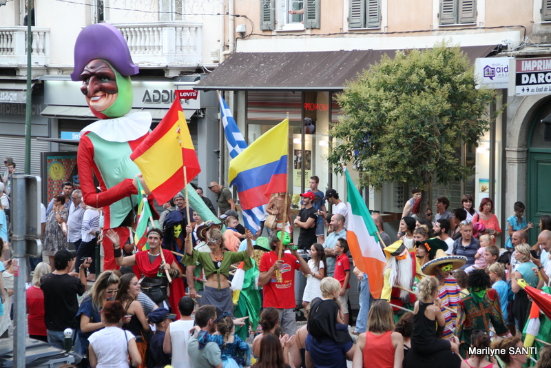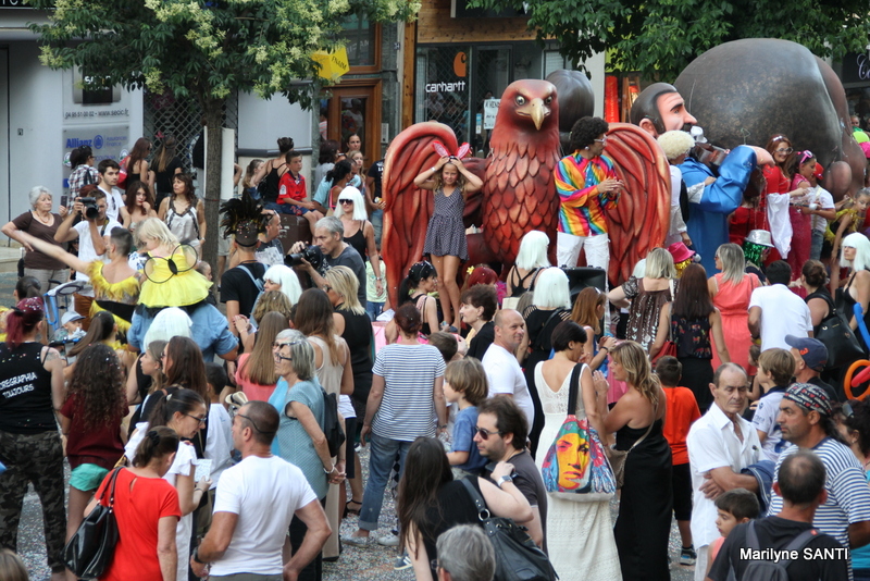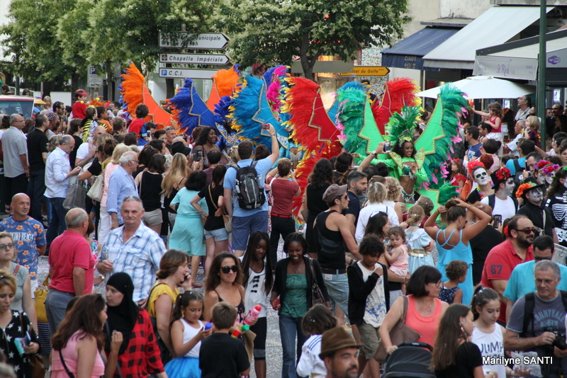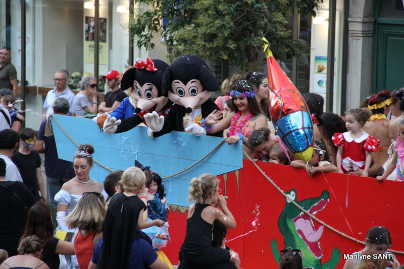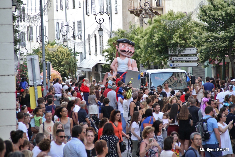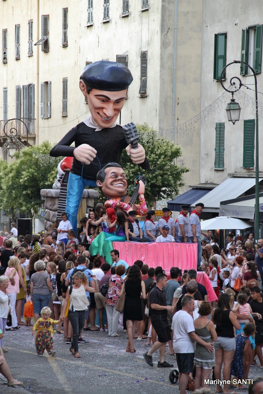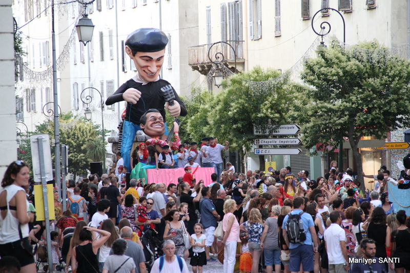 Le cours Napoléon a protégé le grand Corso et sa parade de plus d’une douzaine de chars, les musiciens, danseurs, acrobates, cracheurs de feu, yamakasi, danseurs hip-hop, clowns, échassiers, jongleurs partis de la gare, d’un soleil encore bien présent à 19 heures. Le public était venu très nombreux, parents et enfants déguisés s’en sont donnés à cœur joie entre bataille de confettis et serpentins.