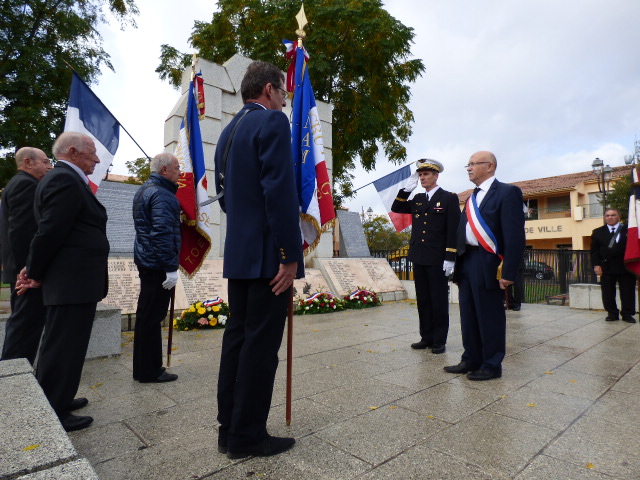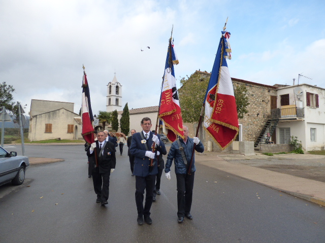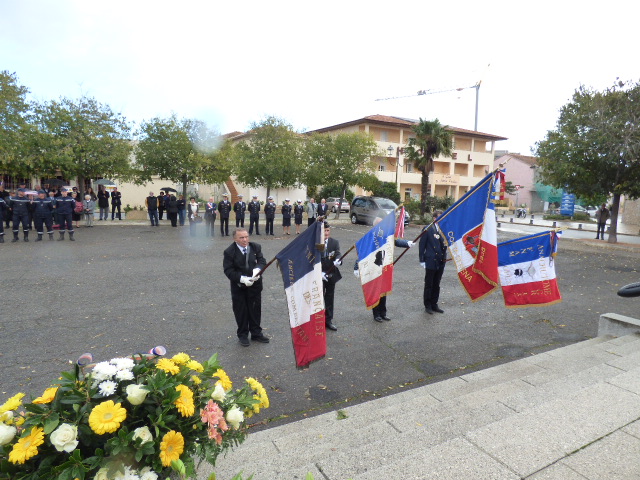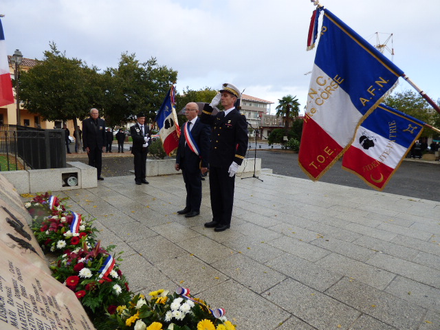 A l'issue de la messe, les honneurs militaires et civils ont été rendus aux morts pour la patrie de ce premier conflit mondial sur la place de la mairie devant le monument aux morts. Une délégation de l'armée de l'air ainsi que les pompiers du centre de secours de Ghisonaccia étaient présents. Plusieurs gerbes de fleurs ont été déposées au pied du monument aux morts par monsieur Costantini de l'association des anciens combattants et victimes de guerre, monsieur Pieri de l'union nationale des combattants, monsieur Manca de l'union nationale des sous officiers retraités et enfin monsieur Francis Giudici maire de Ghisonaccia accompagné du capitaine Duvillard représentant la base aérienne 126.