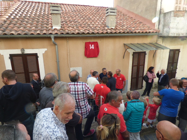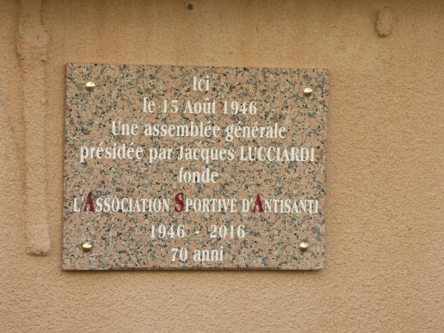 En effet, en présence de nombreux invités issus du monde associatif régional, d'élus du canton et des cantons limitrophes et de la population du village, le fils de Jacques Lucciardi, Vincent, a dévoilé une plaque rappelant qu'en un lieu fort apprécié des villageois, le café des sports, l'association sportive d'Antisanti vit le jour le 15 août 1946 à l'issue d'une assemblée générale fondatrice.