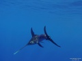 "La rencontre avec l’Espadon est toujours très intense, un poisson rapide, fait pour la vitesse, mais aussi très nerveux. Le rostre est une véritable épée aussi affutée qu’un couteau. Il n'est pas rare en cette période de voir des sauts d'Espadons au dessus de l'eau, il monte en général à la verticale pour retomber. La prise de photo est très difficile tant l’instant est rapide" nous raconte Stéphan Le Gallais..