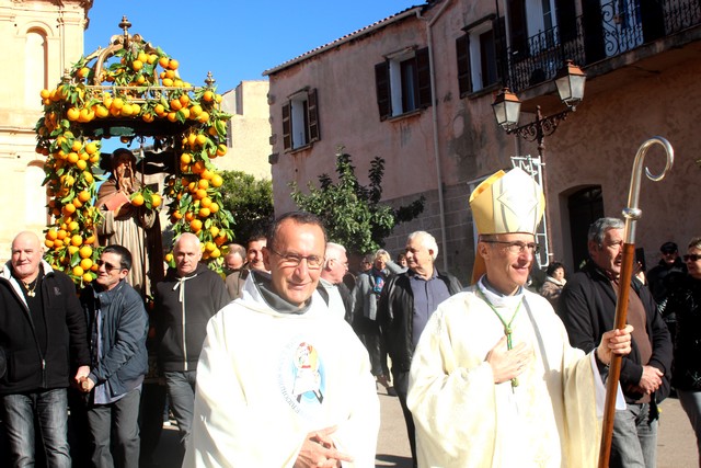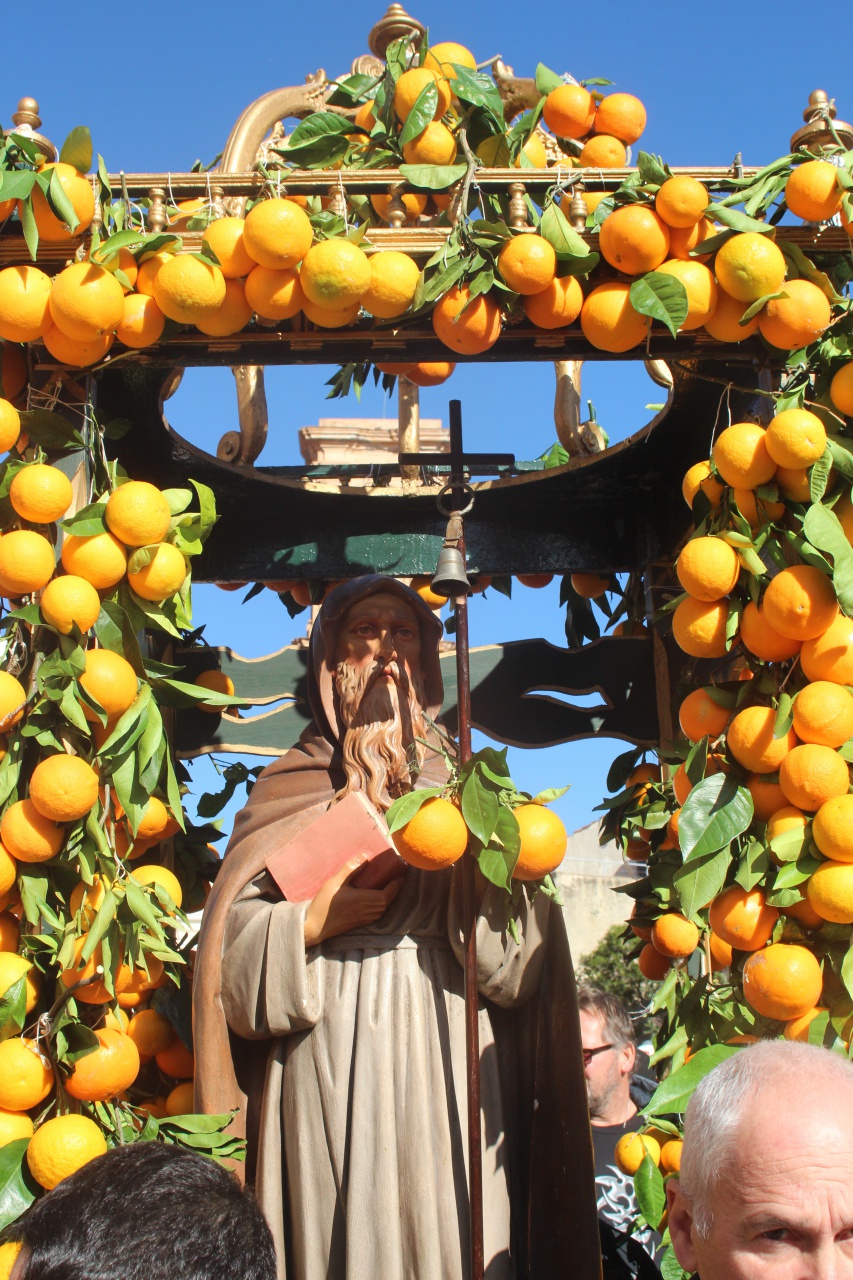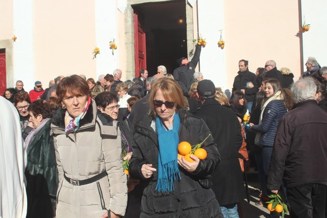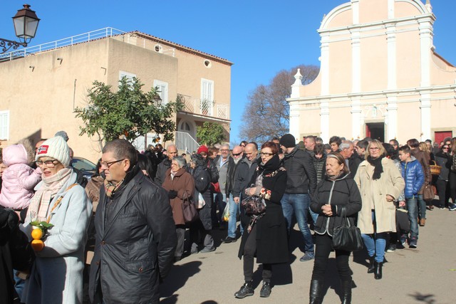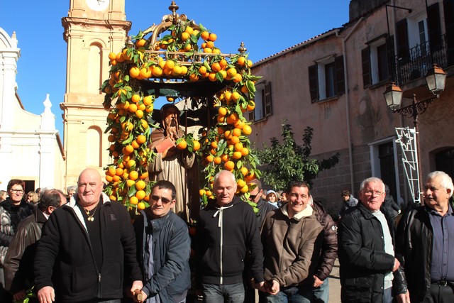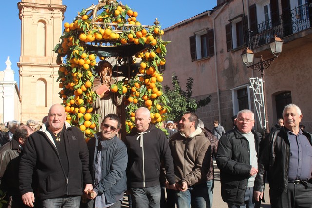 A l'issue de la messe, une longue procession se formait avec en tête les enfants du catéchisme et la foule avec des oranges à la main, suivis des religieux et confrères précédant la statue de Sant'Antone ornée d'oranges et portées par les habitants du village.