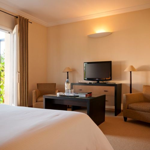 Dans cet écrin de verdure, vous ne saurez où donner de la tête, entre les superbes piscines (pas moins de 5 bassins offerts dont un pour enfants), l’espace spa et ses installations de pointe, le restaurant étoilé de gastronomie corse et le terrain de tennis.