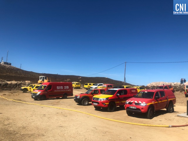 Depuis Corte et Bastia, sur la route d'importantes colonnes de camions de pompiers convergeaient vers le col de Salvi alors qu'un poste de commandement et le centre opérationnel départemental en présence du Florent Farge, sous-préfet de Calvi, étaient activés au Col de Salvi .