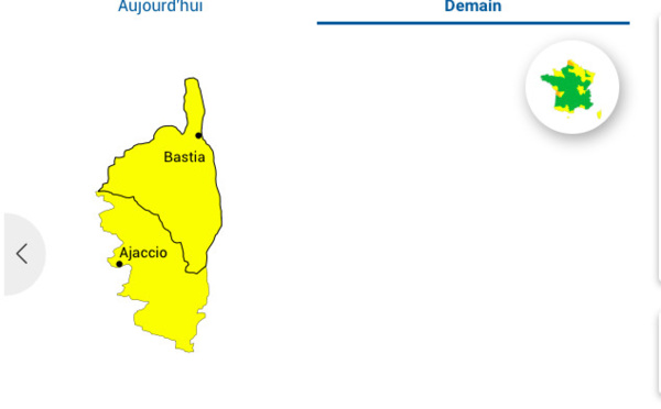 Météo-France place la Corse en vigilance jaune pour le paramètre "orages" demain, mardi 21 novembre. En Haute-Corse, la vigilance démarre à 15 heures, et en Corse-du-Sud à 19 heures, se prolongeant au moins jusqu'à minuit. Selon les prévisions, en...