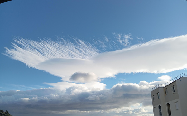 Un ciel agité balayé par le vent a sculpté d’impressionnants nuages au-dessus de la mer. Entre éclaircies et masses nuageuses étirées, l’atmosphère donnait au paysage une allure changeante, typique des journées venteuses sur le littoral bastiais. Si, comme F....