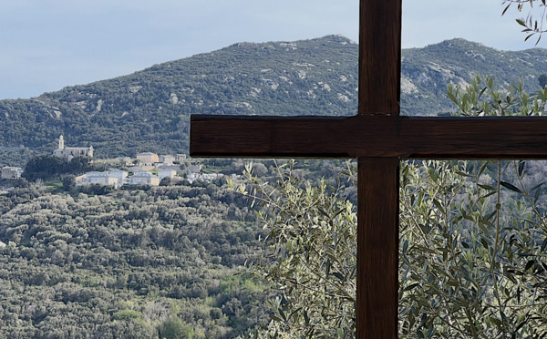 Une croix faisant face à une église voisine, des branches d'un olivier qui s'est invité à la prise de vue, un ciel lumineux, au-dessus d'une vallée abrupte. L'image de Malena de ce coin de la Pieve di Lota est tout simplement belle. Si vous aussi, comme elle,...