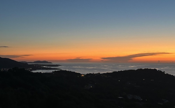 En Balagne, à l'heure où le soir s’installe doucement après le coucher du soleil, la mer et le ciel s’unissent dans des teintes orangées et bleu profond, offrant un spectacle fugace où la lumière s’efface derrière les reliefs. Peu à peu, les villages...