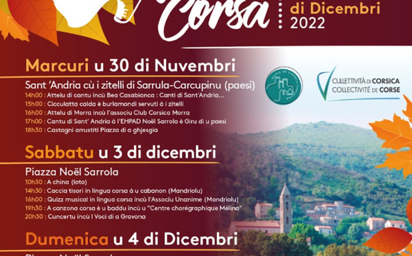 Sarrula Carcupinu va célébrer "A Festa di a lingua Corsa" jusqu'au 8 décembre. Le maire Alexandre Sarrola et la commune ont concocté un programme éclectique tout au long de ses journées qui vont s'achever avec la célébration de l'Immaculata Cuncizzio è a...