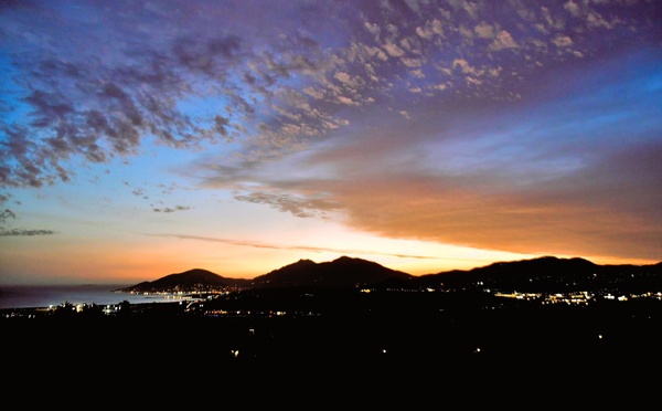 Après le passage de l’orage, le ciel d’Ajaccio, vu de Petre Alte sur les hauteurs de Bastelicaccia, s’est transformé en un vaste tableau de lumières. Les derniers nuages sombres s’effacent peu à peu, laissant apparaître les reflets dorés du couchant sur le...