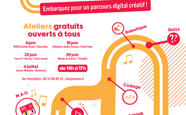 Dans le cadre de la Cité Éducative, L'association Emaho organise les mercredis 8, 15, 22, 29 juin et 6 juillet des Parcours numériques pour tout public. « Nous reprenons cette année les ateliers numériques en extérieur à Bastia » explique...