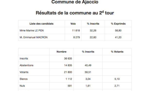 Si Emmanuel Macron l’a emporté au niveau national, en Corse, c’est Marine Le Pen qui a pris la tête de ce second tour de l’élection présidentielle. À Ajaccio, elle totalise 58,80% des voix, contre 41,20% pour Emmanuel Macron. Pour le maire Laurent Marcangeli,...